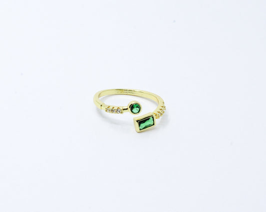 Anillo Dorado Baguette Verde Esmeralda