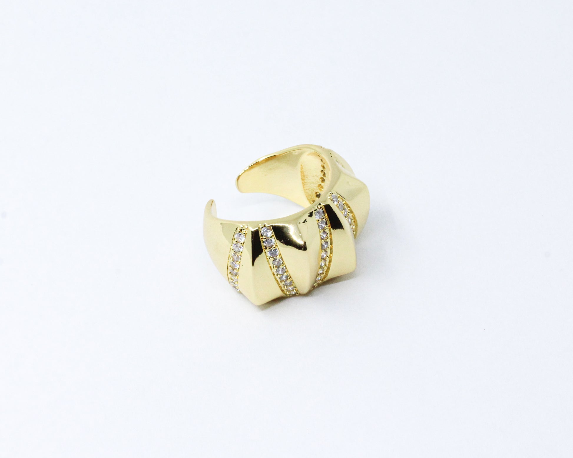 Un anillo graduable en talla, estilo rústico, con bandas lisas y finas líneas de microcircones que aportan un estilo inigualable y destellos de luz. ¡Luce como una verdadera joya con nuestro anillo!