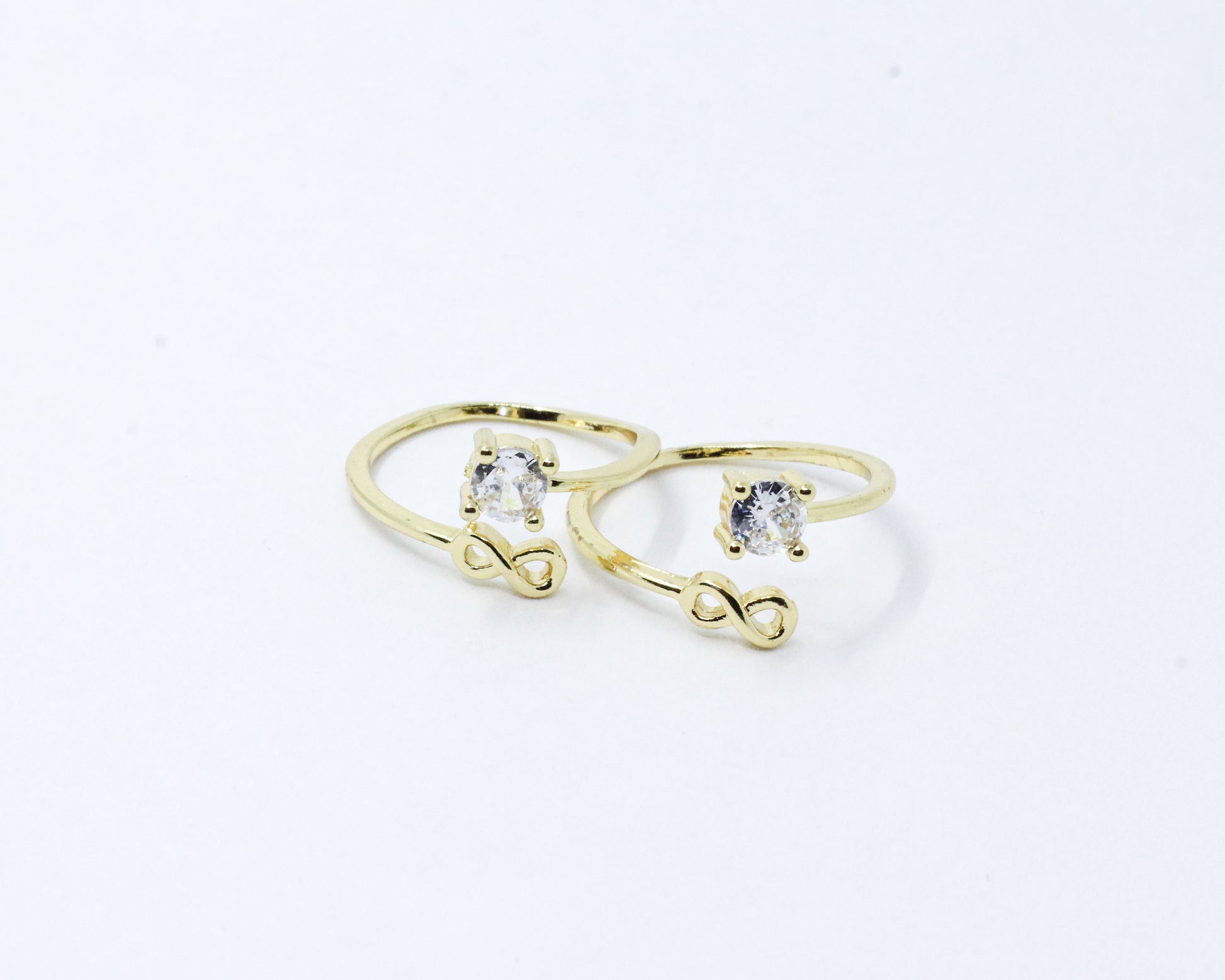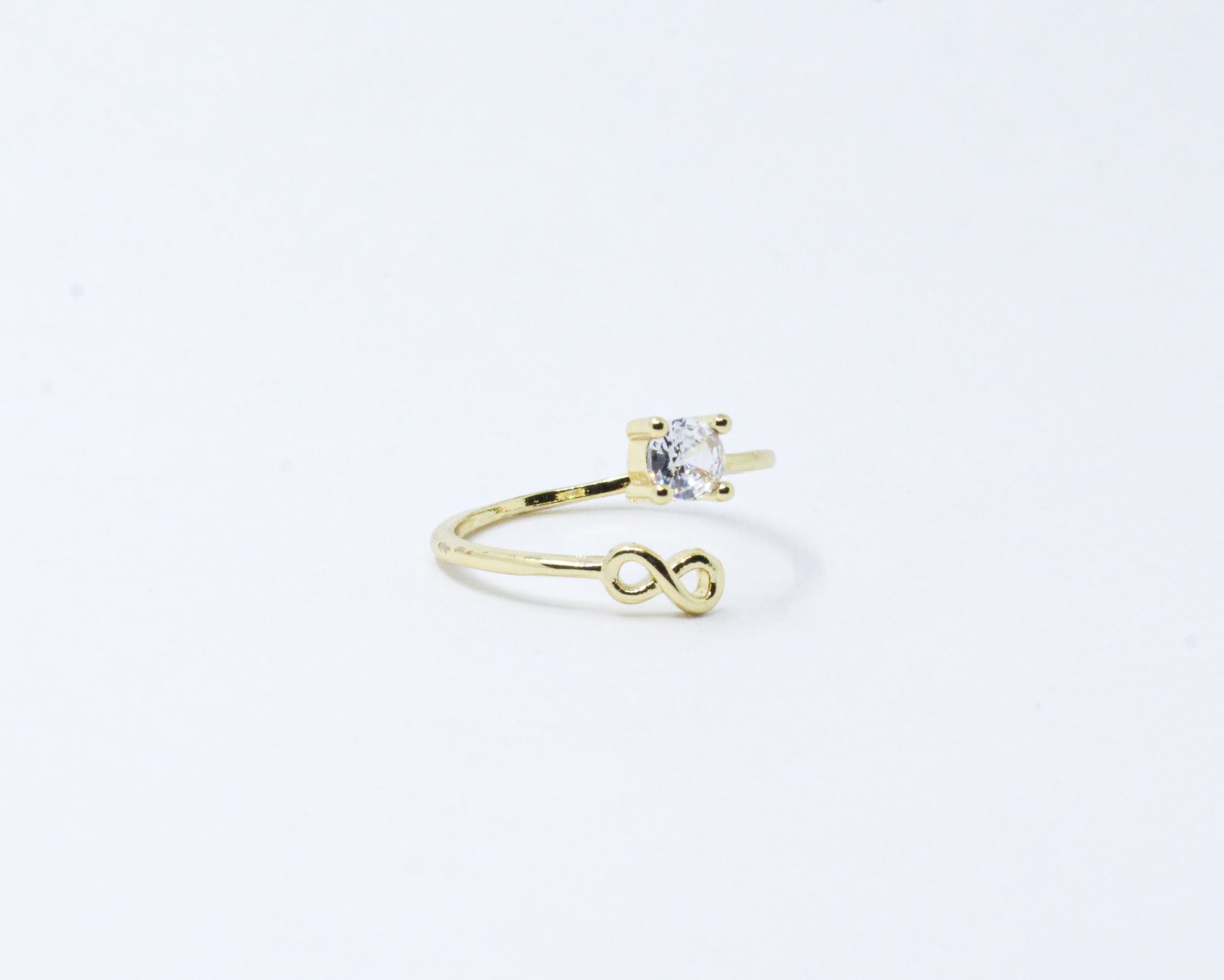 Un anillo graduable en talla, con un extremo en forma de infinito, simbolizando la eternidad, y en el otro extremo un circón clásico estilo diamante, que aporta un brillo sutil. ¡Completa tu look con este anillo y brilla como nunca antes!