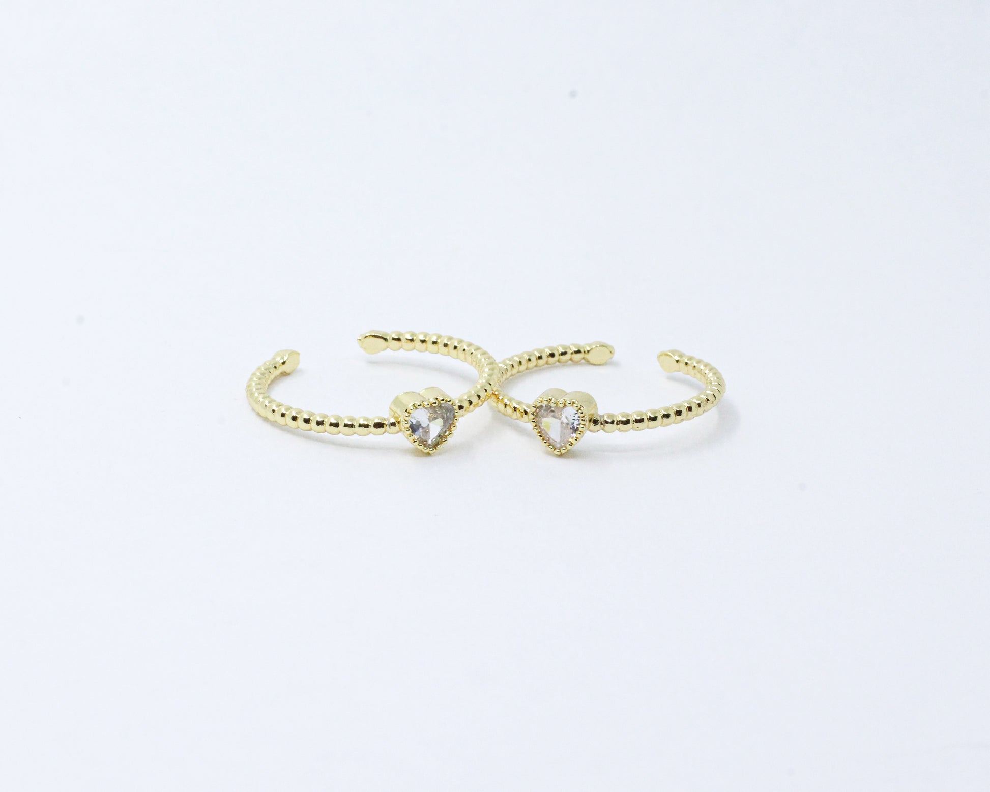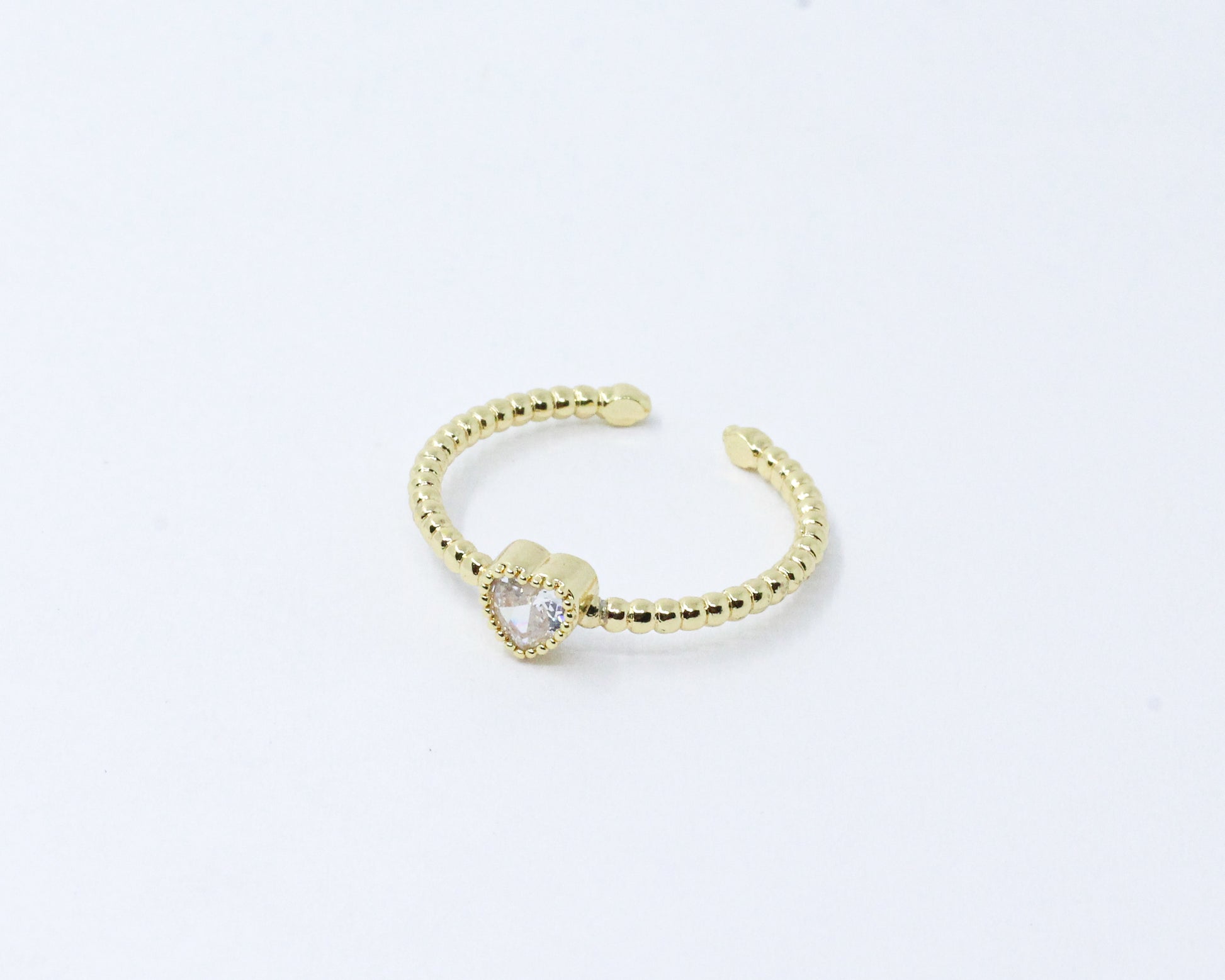 Un anillo graduable en talla con un bisel en forma de corazón finamente texturizado, y laterales en esferas que evocan ternura y una elegante serenidad. ¡Hazte con él y realza tu estilo!