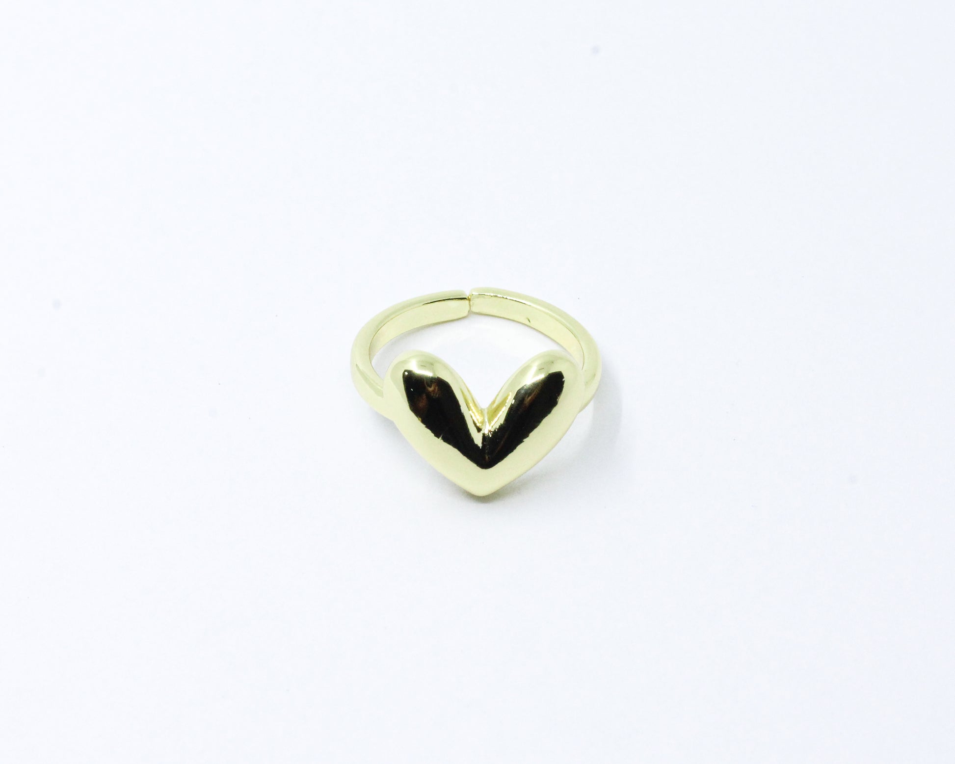 Un anillo graduable en talla, con un diseño en forma de corazón estilizado y bordes redondeados, que aporta un toque romántico y distintivo. Demuestra tu pasión con este anillo único.