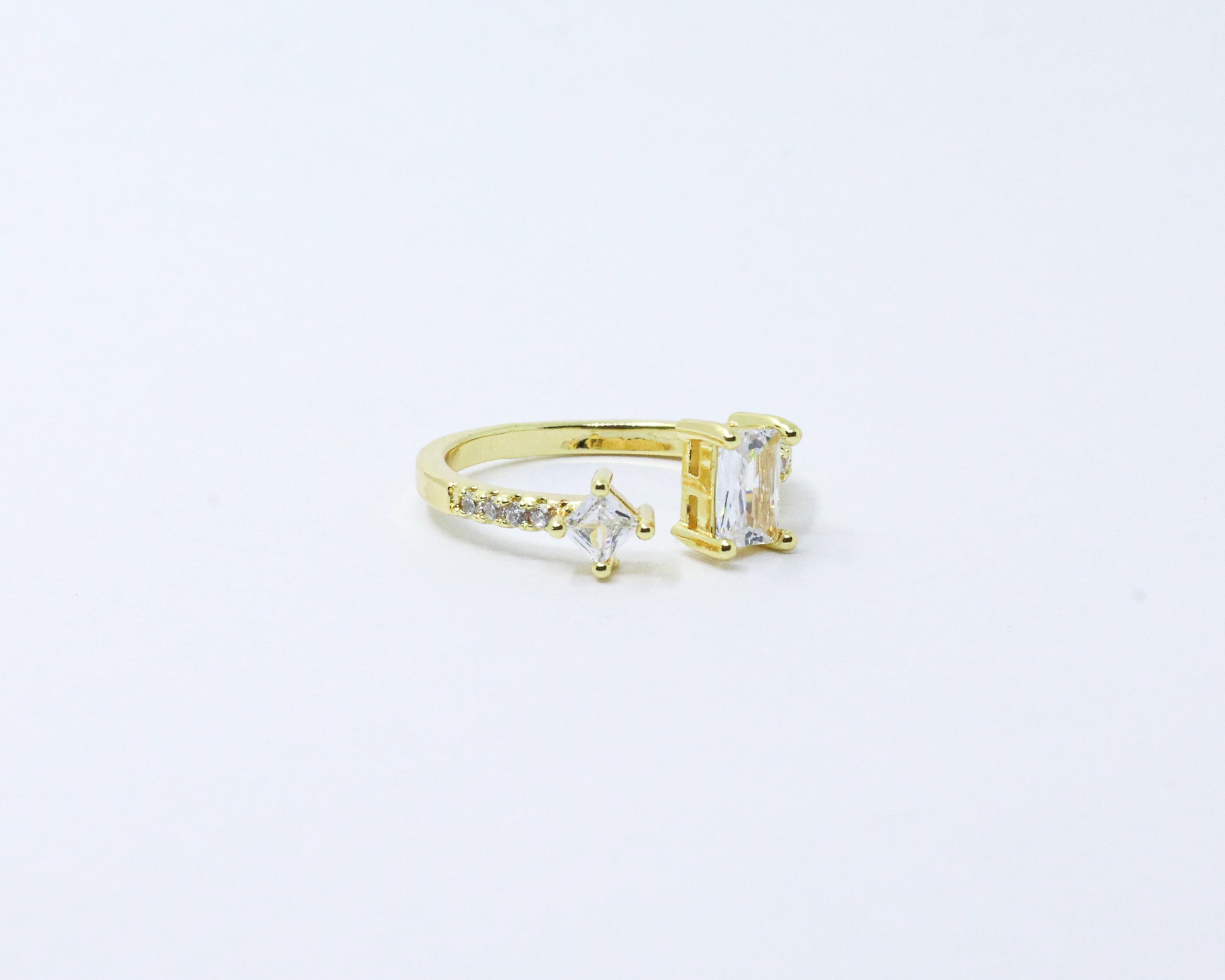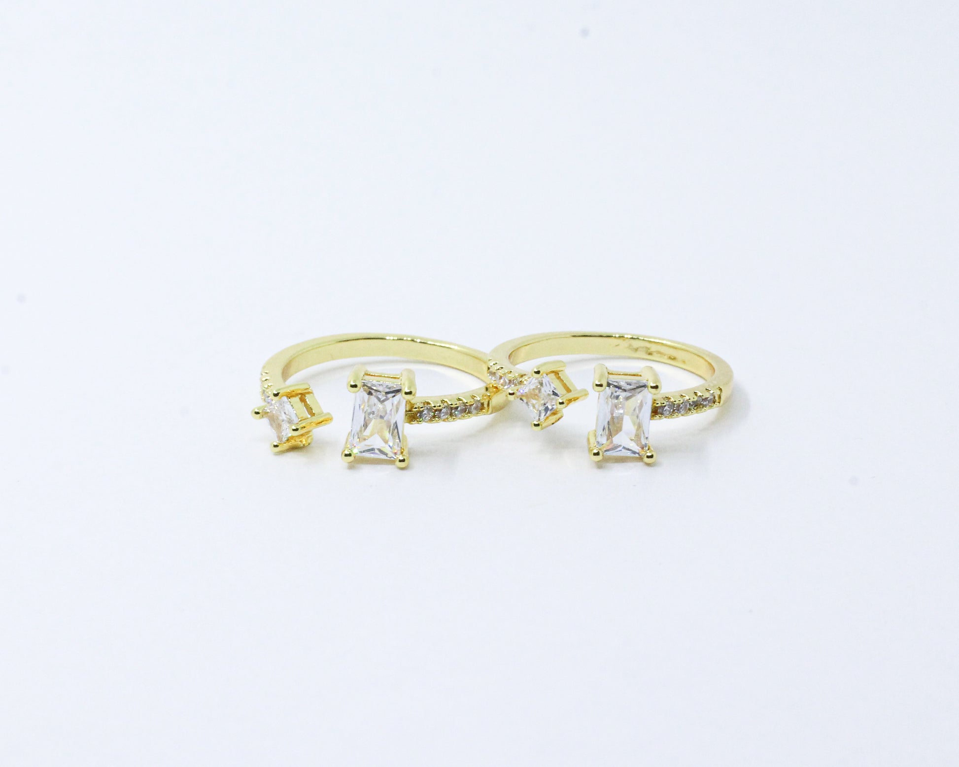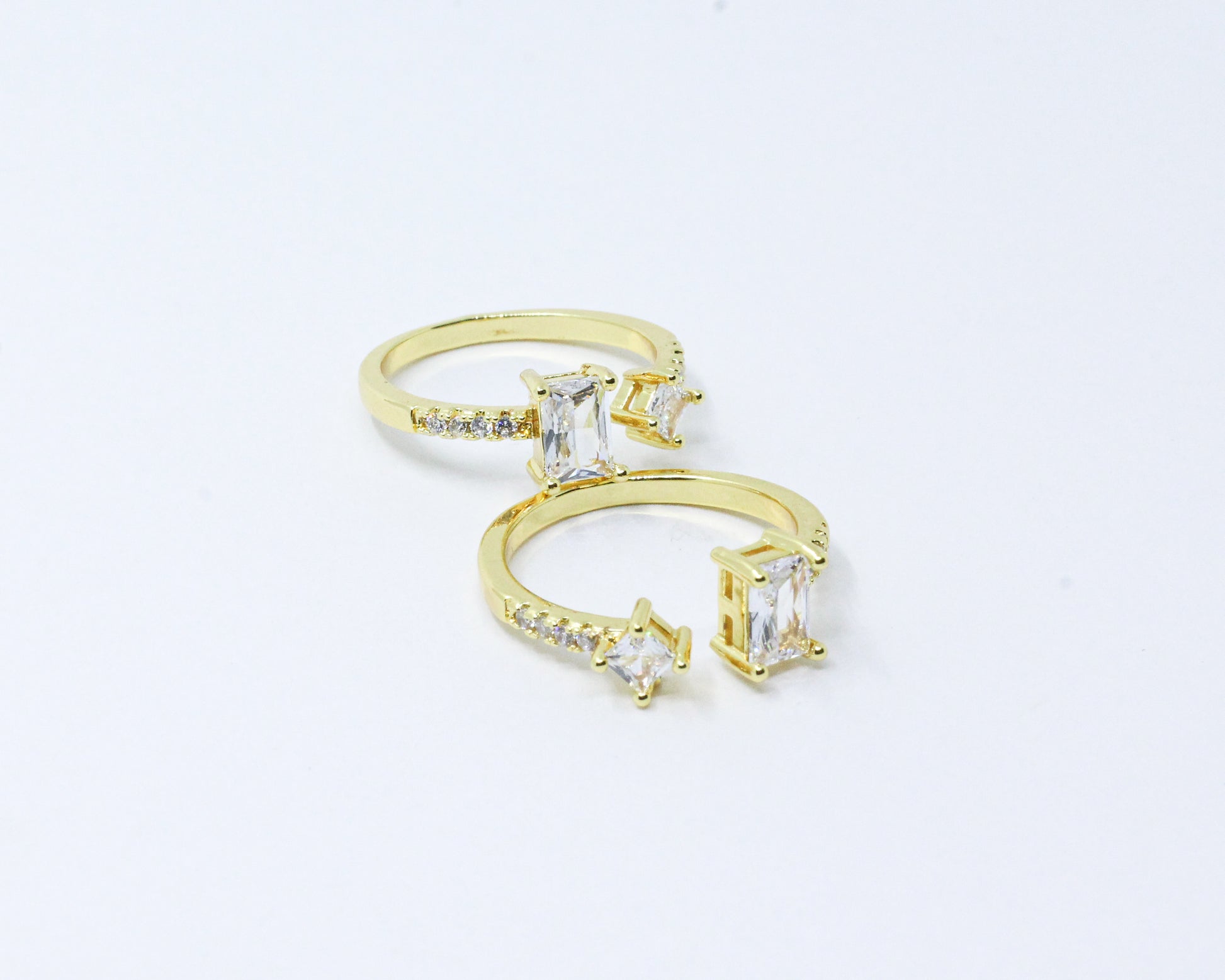 Un anillo graduable en talla, con circones blancos en los extremos y microcircones en los laterales, que destacan su diseño único y moderno. Ideal para quienes buscan una joya versátil