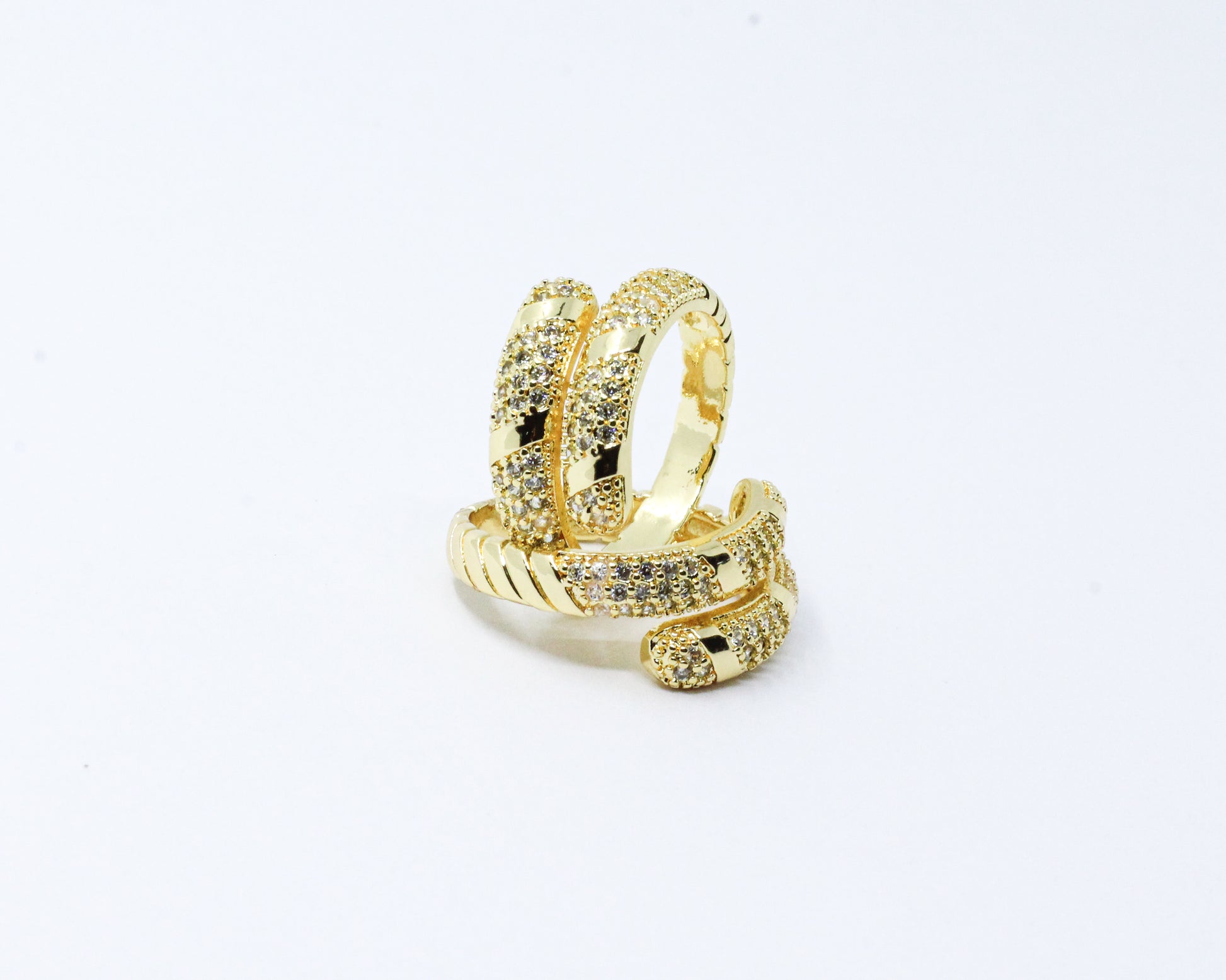 Un anillo graduable en talla, con líneas definidas en contraste y microcircones que destacan por su brillo sutil. El diseño único y sofisticado complementa cualquier atuendo y agrega un toque de lujo.