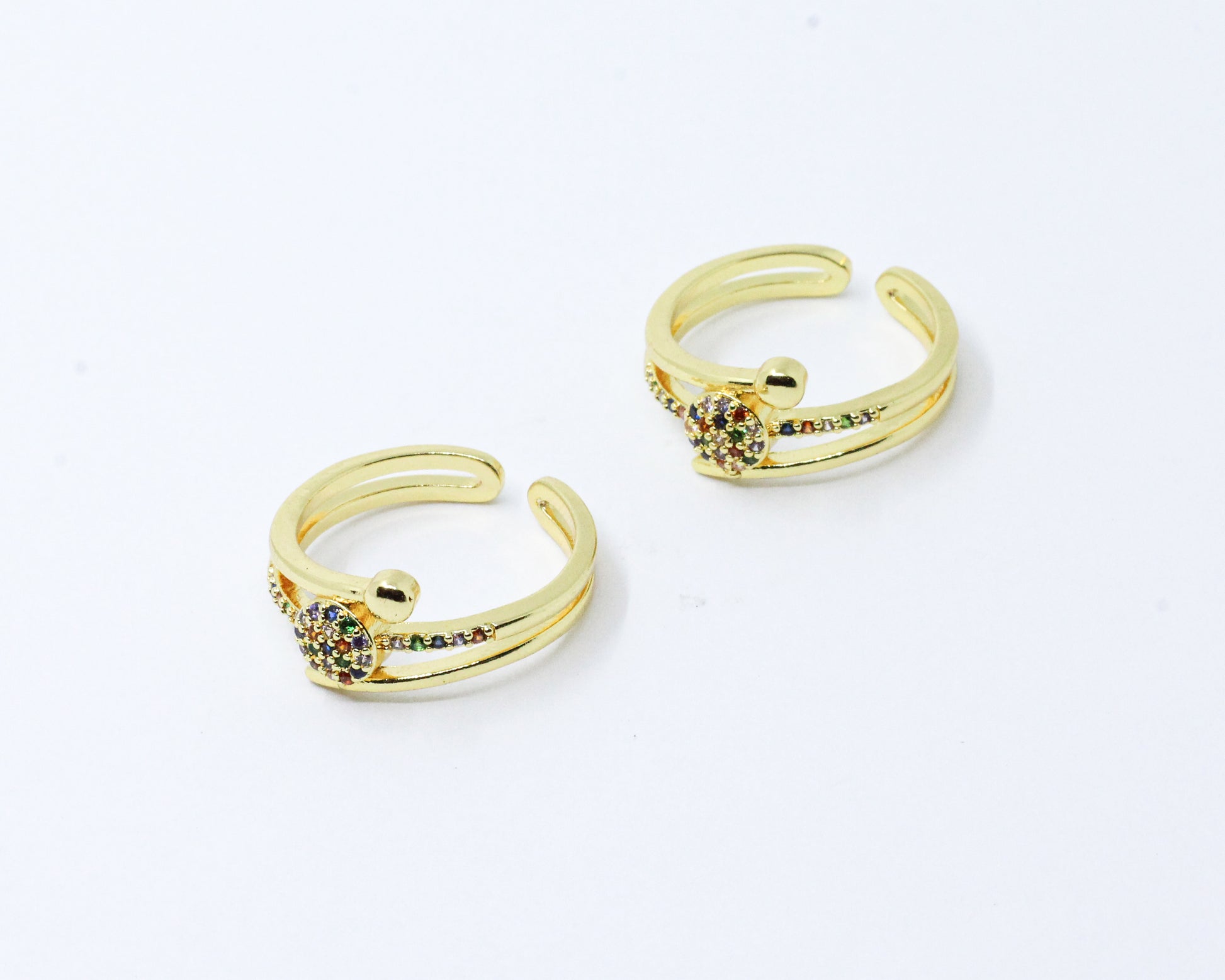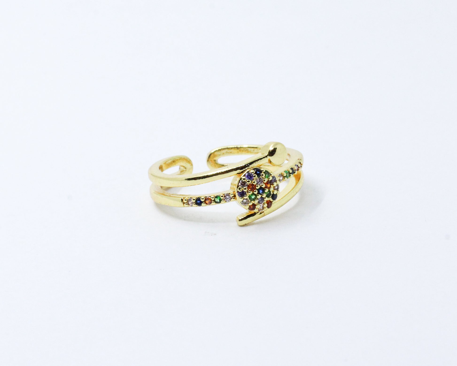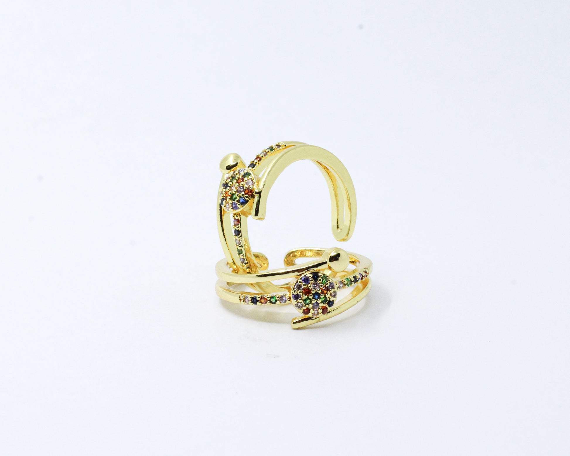 Un anillo graduable en talla, con una fusión de microcircones multicolor, una estructura abierta y una silueta dinámica que resalta su carácter y vibrante colorido. Hecho para aquellos que buscan un estilo único y llamativo.