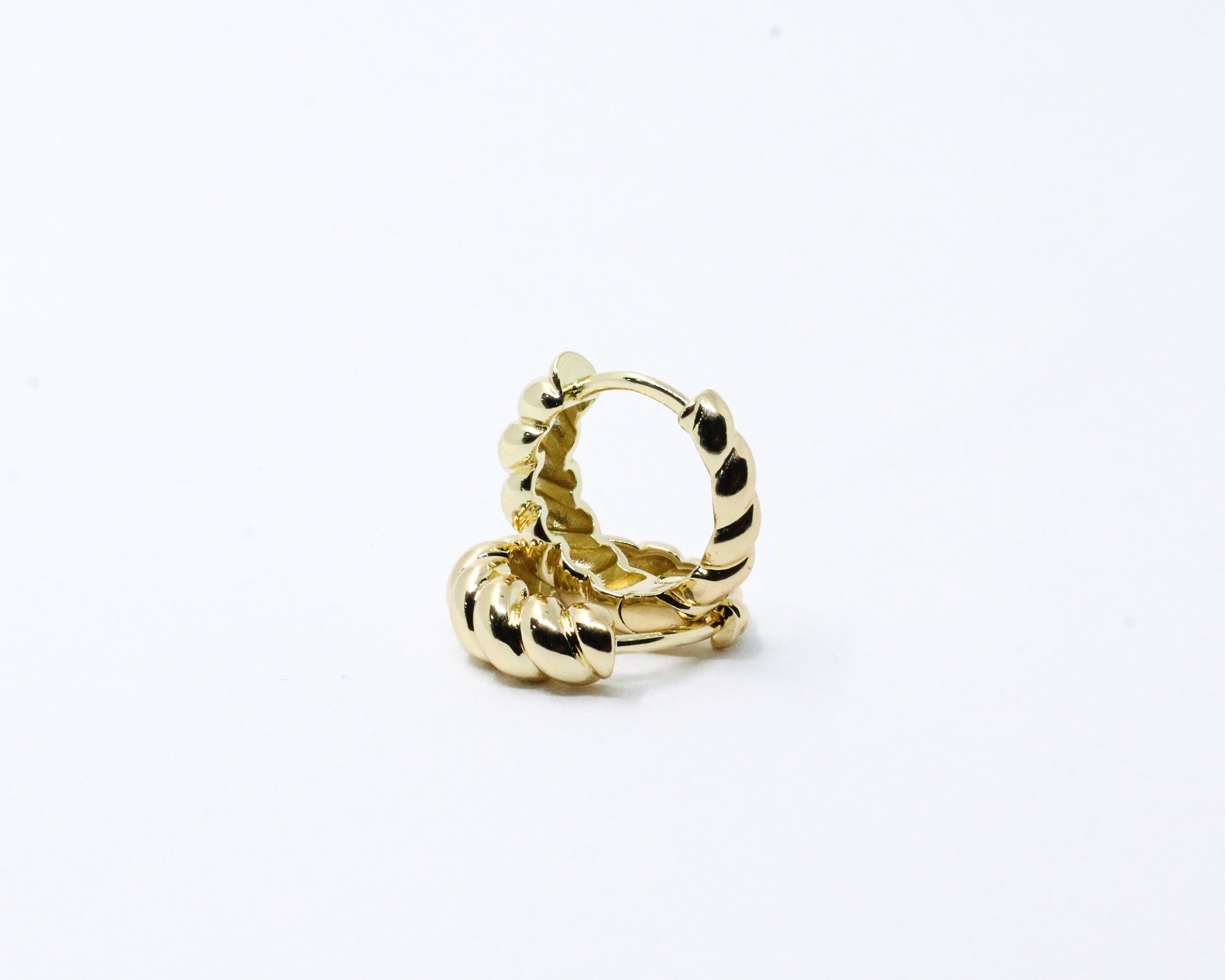 Un par de candongas doradas estilo chunky, con un diseño entorchado que aporta textura, además de carácter. Su forma audaz junto con su estilo moderno las convierte en el accesorio ideal para realzar cualquier look con elegancia.