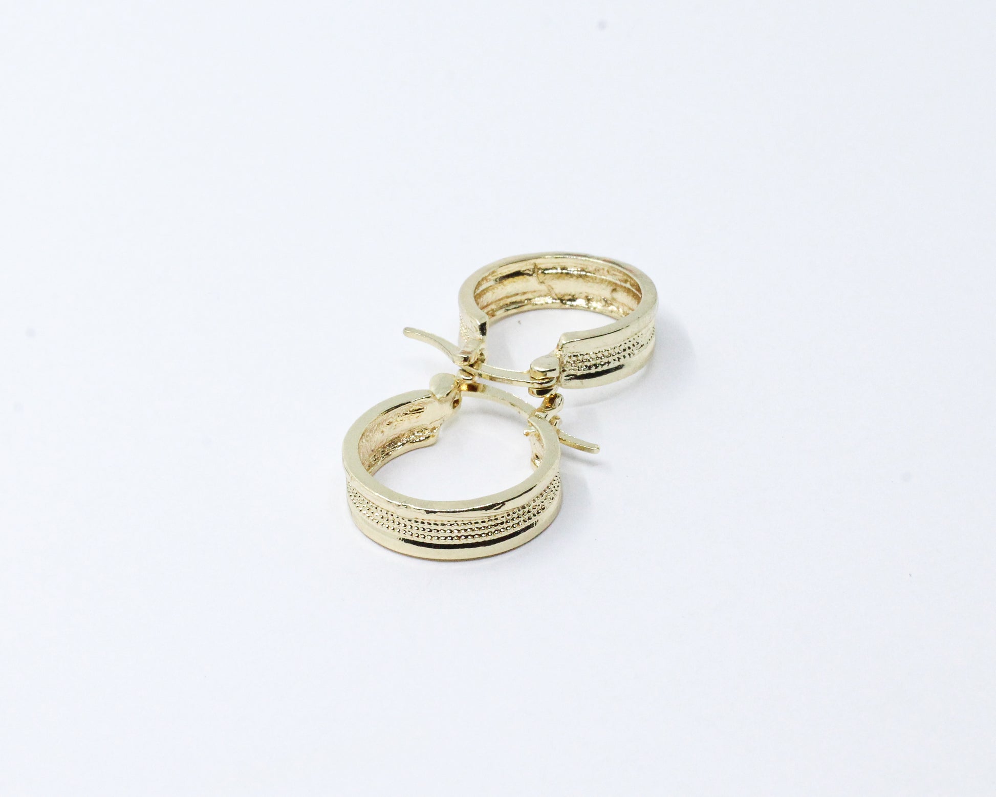 Un par de candongas doradas que combinan solidez y sutileza, evocando un delicado grabado texturizado. Sorprenda con su sofisticación y exclusividad al lucir esta joya en cualquier ocasión.