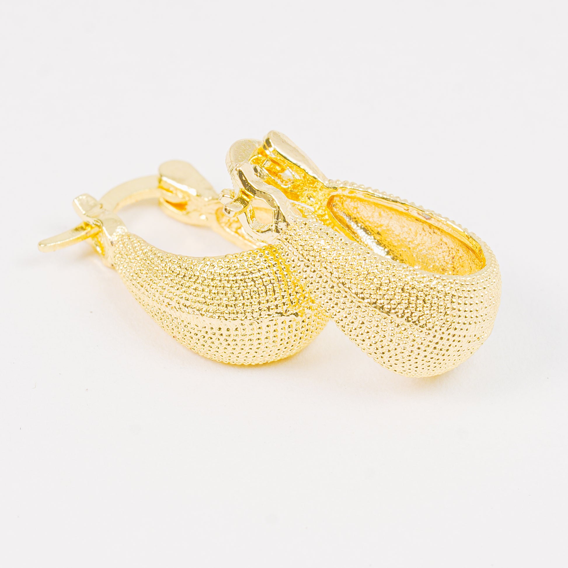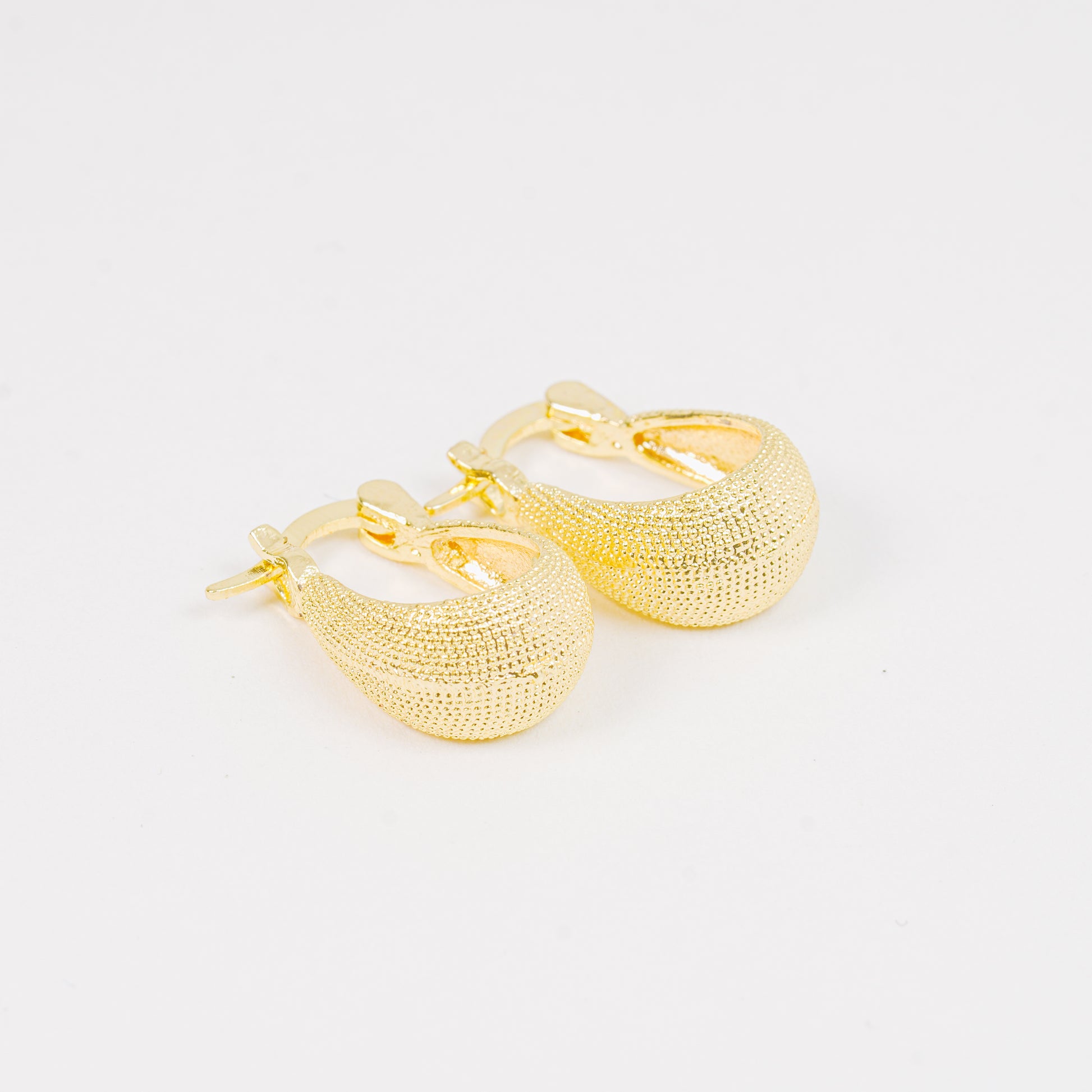 Un par de candongas doradas en estilo curvo, adornadas con esferas que emiten destellos finos y aportan sutileza al diseño. Añada un toque de distinción a su estilo con esta elegante candonga.