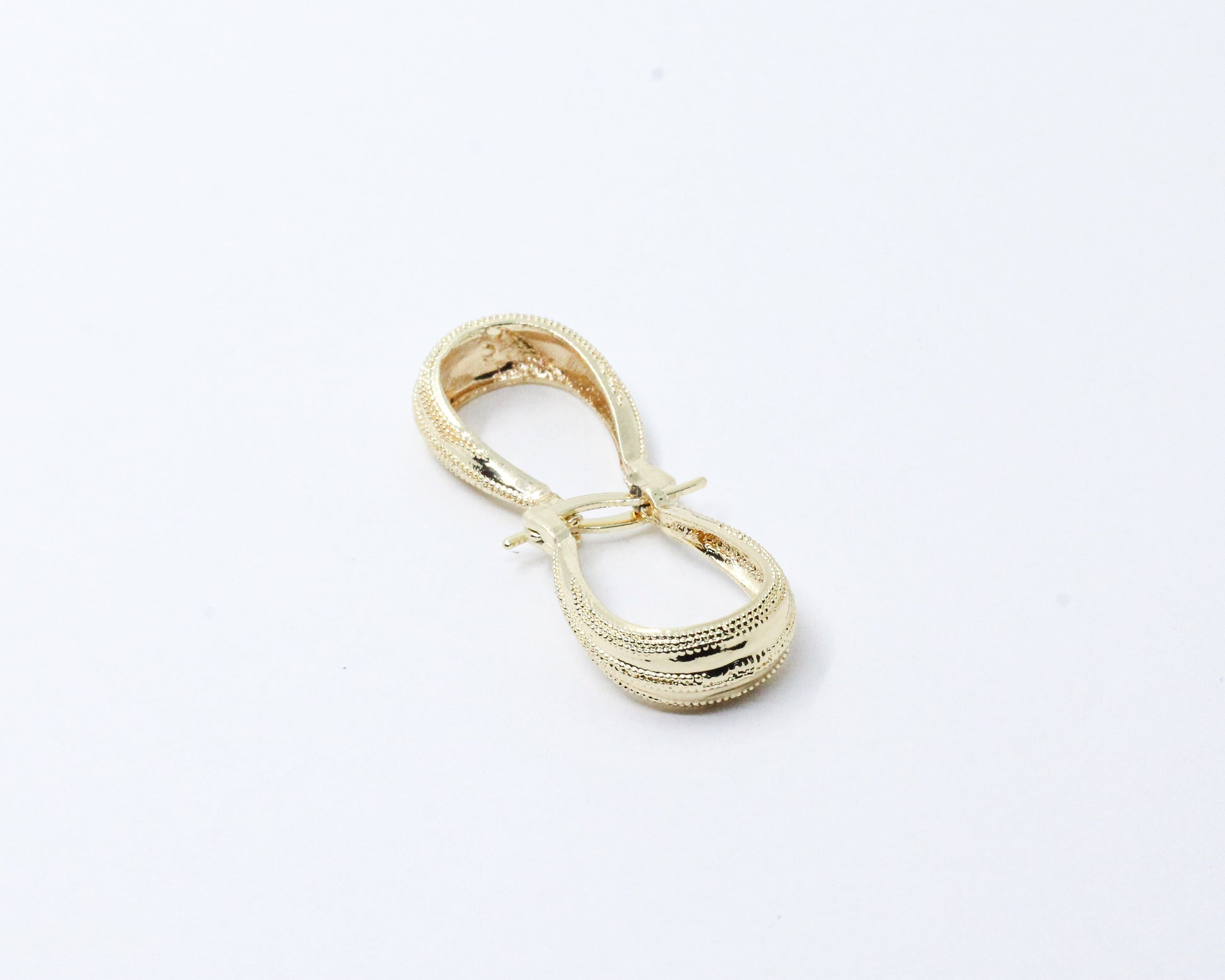 Un par de candongas doradas de forma alargada, esculpidas en suaves curvas que evocan un diseño clásico con un aire de distinción atemporal. Su silueta refinada añadirá un toque de sofisticación a cualquier atuendo.