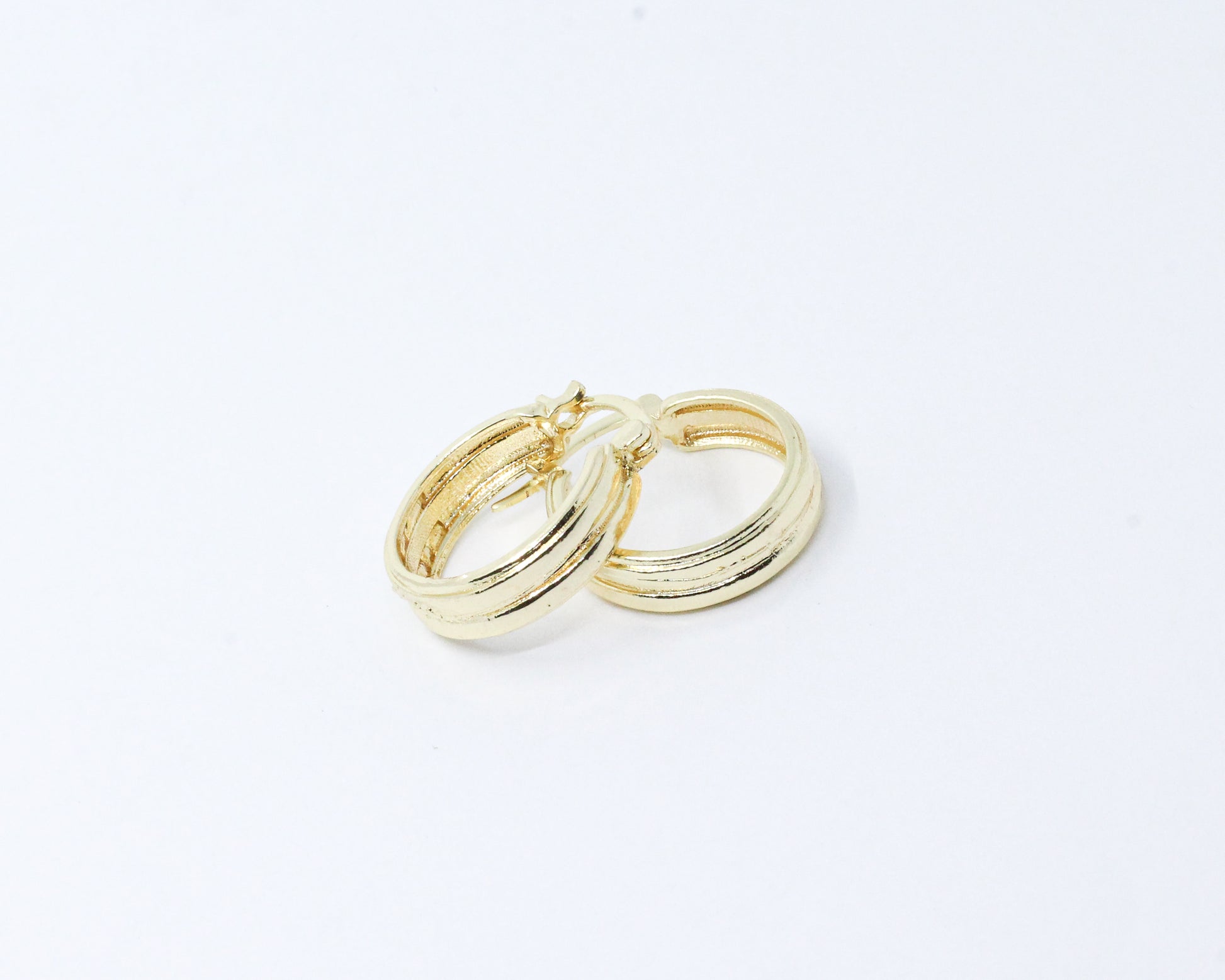 Un par de candongas doradas con acabado liso en forma de aro, que evocan una elegancia serena y sobria. ¡Hazte con la tuya y brilla con luz propia!