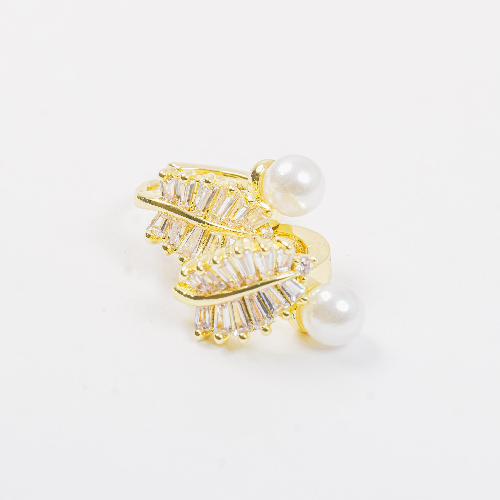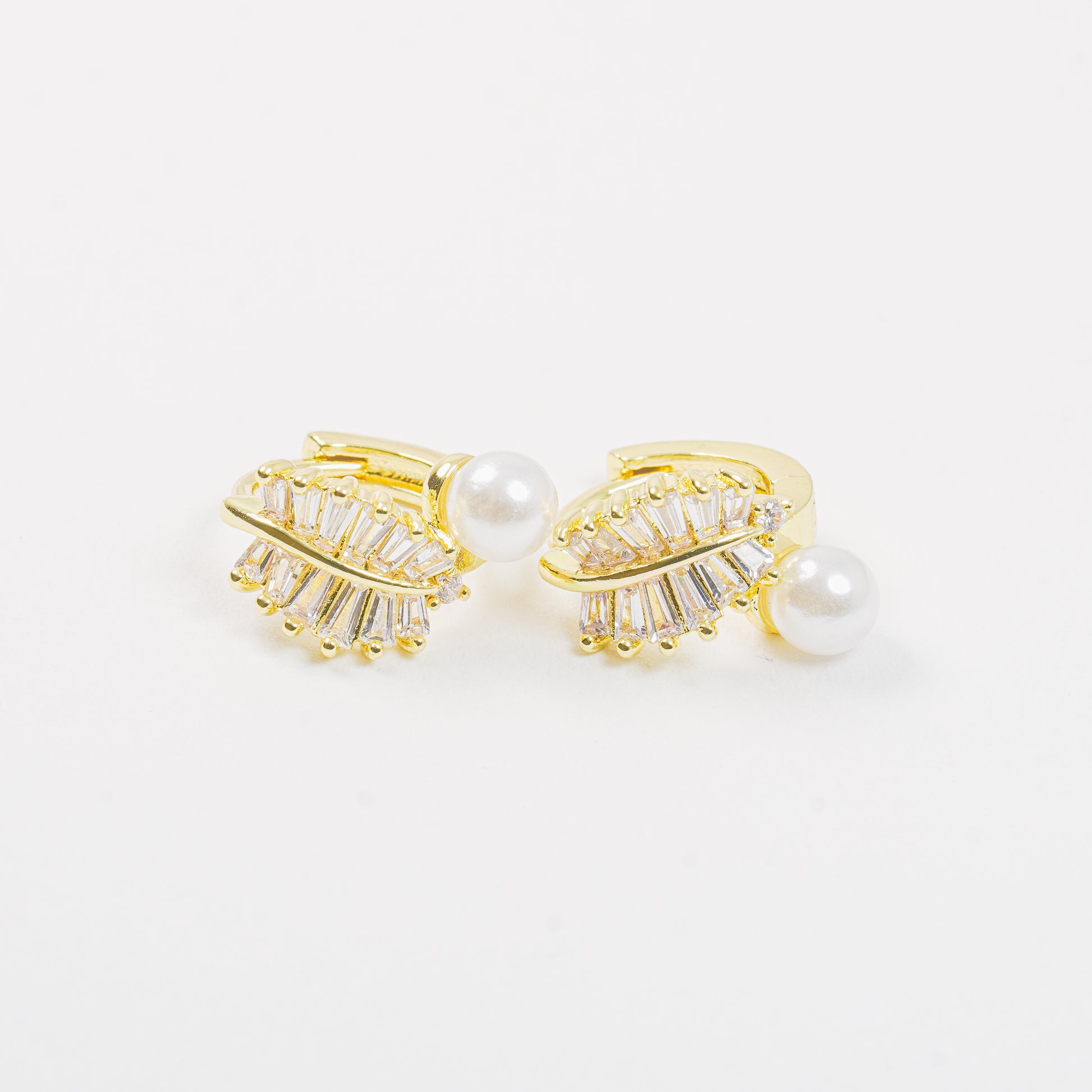 Un par de topos dorados diseñados con un delicado abanico de circones baguette que aporta brillo refinado y un toque de sofisticación. Su perla frontal crea un contraste elegante, logrando una pieza clásica con un giro moderno.