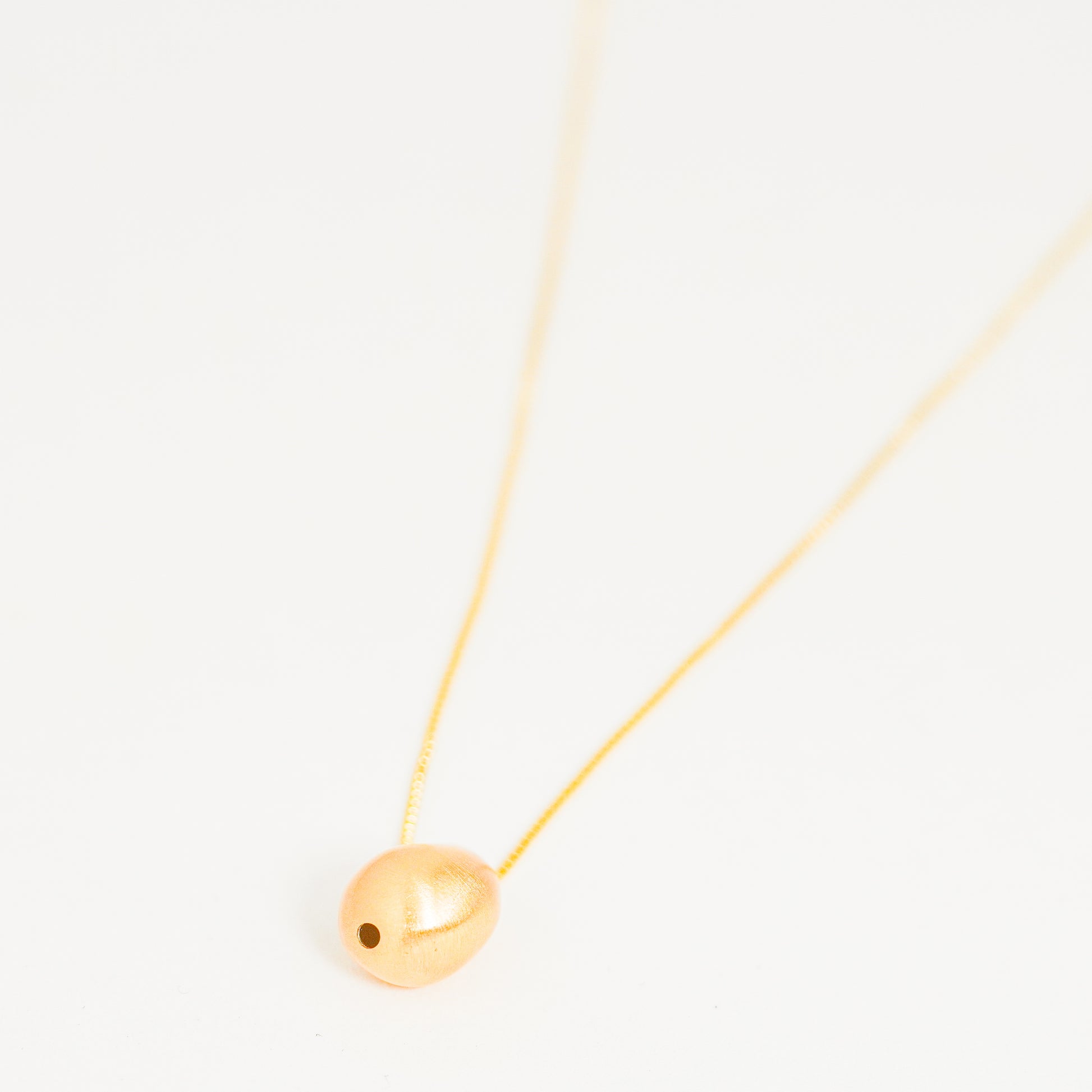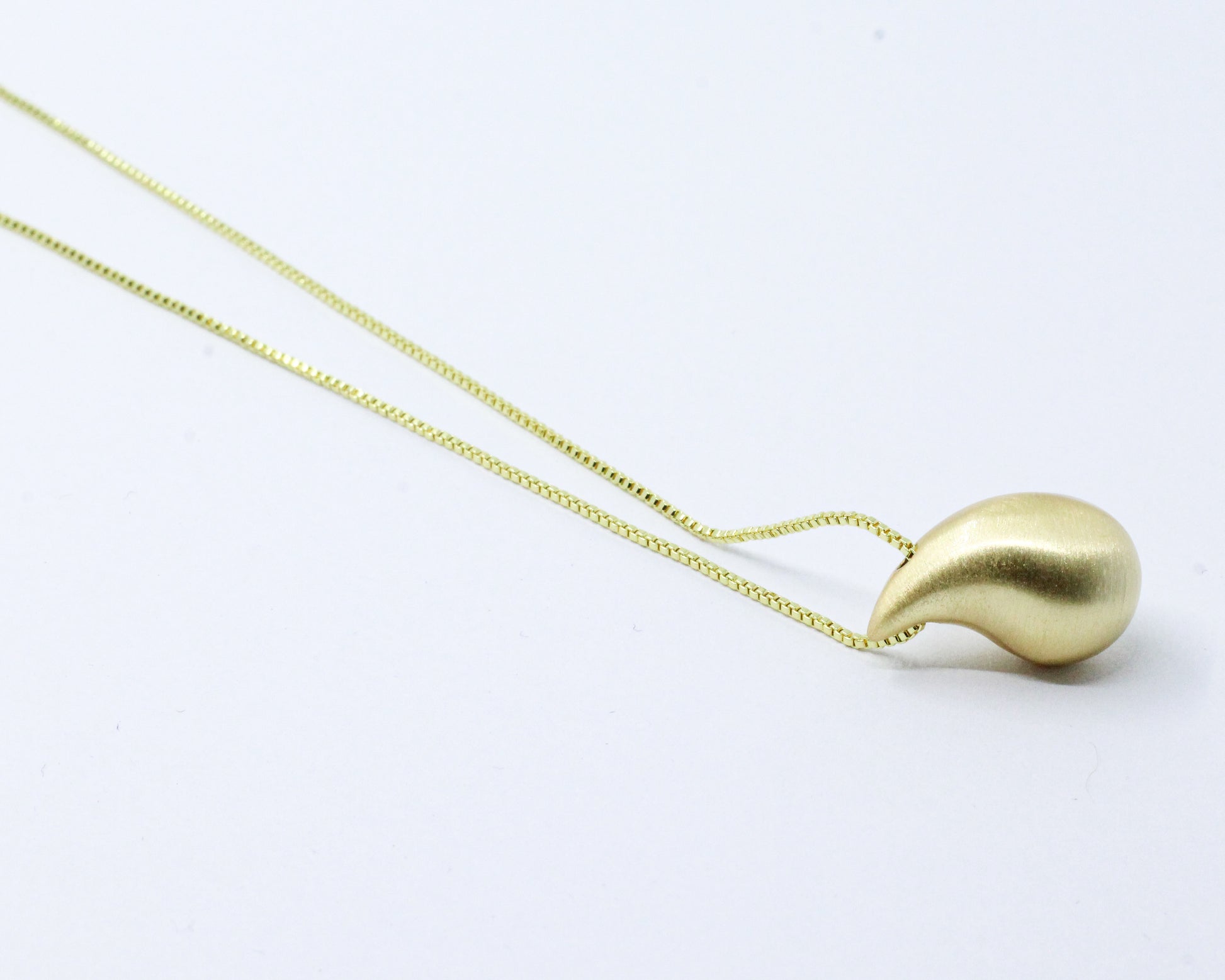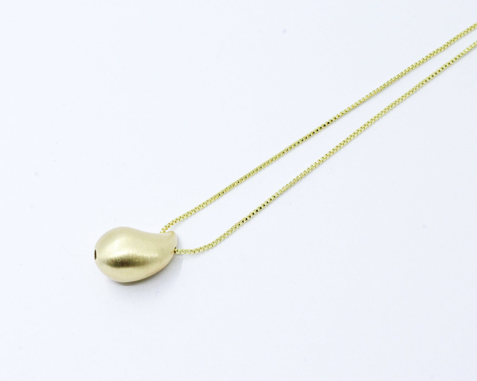 Un collar dorado graduable en largor, con un fino tejido veneciano y un dije en forma de gota, de suaves acabados redondeados. Una pieza versátil y única que se adapta a cualquier estilo