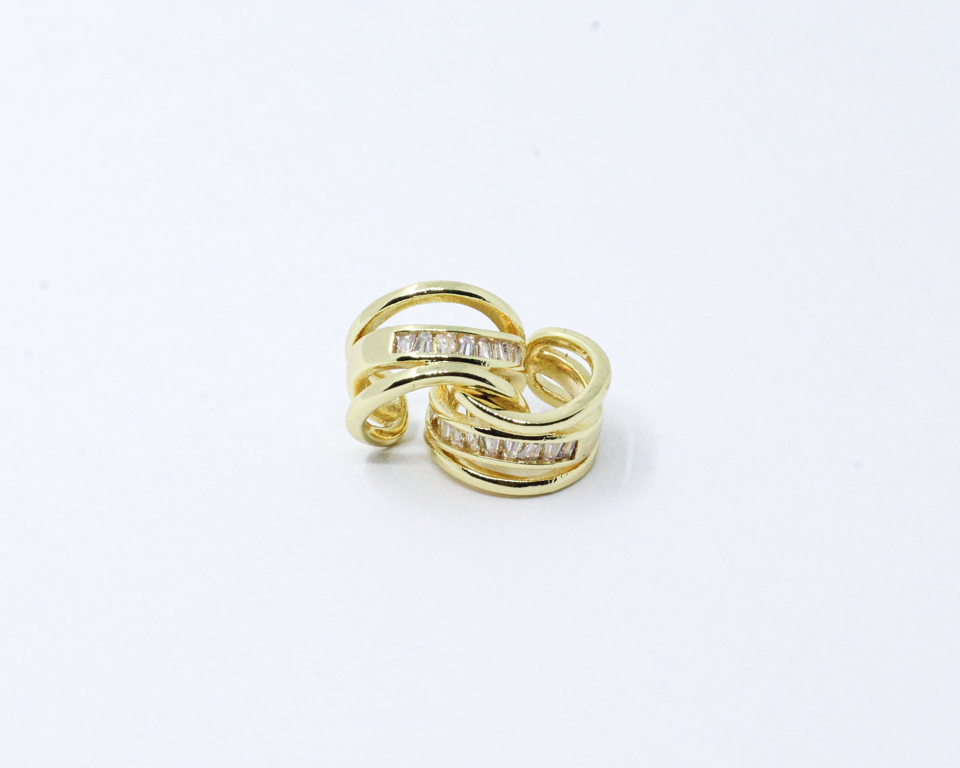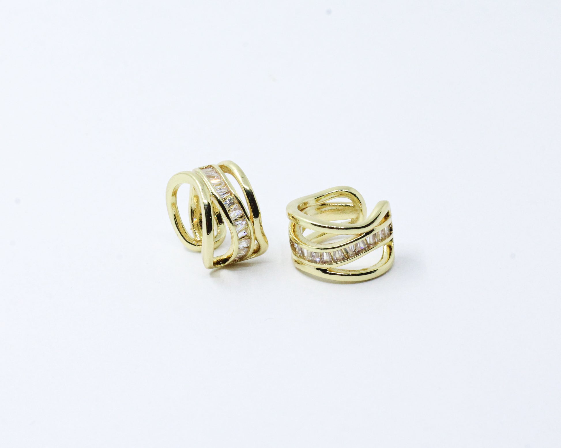 Earcuff estilo baguette, con una delicada hilera de circones en el centro que aporta un sutil brillo. Sus curvas suaves y bordes redondeados crean un movimiento armonioso, añadiendo un toque de elegancia fluida al diseño. Ideal para acompañarte en cualquier ocasión con estilo y clase.