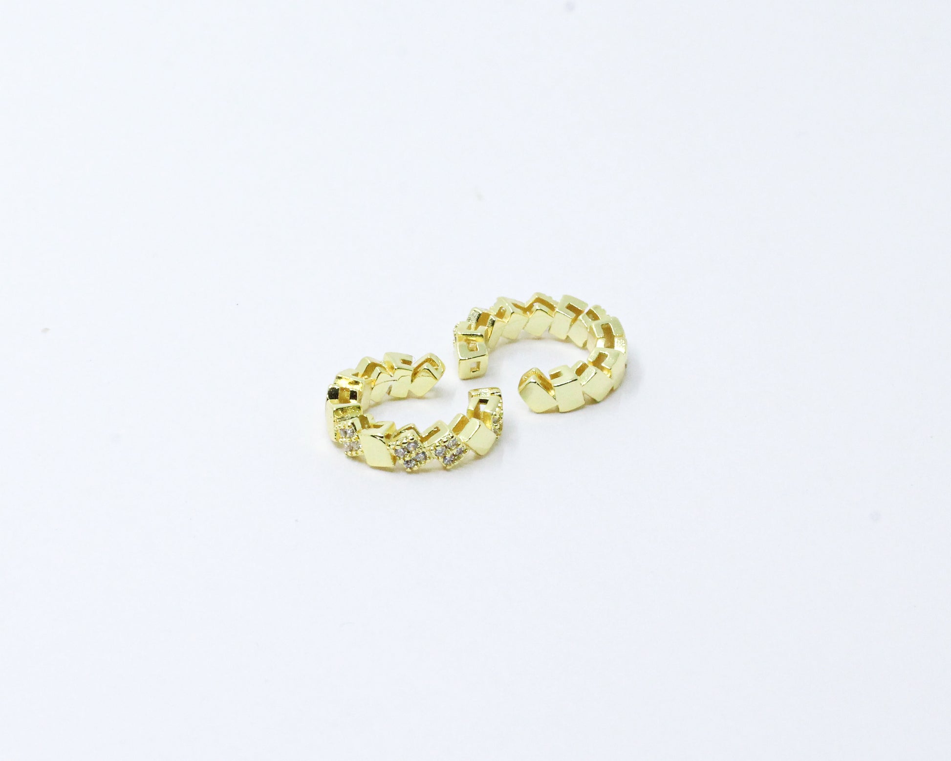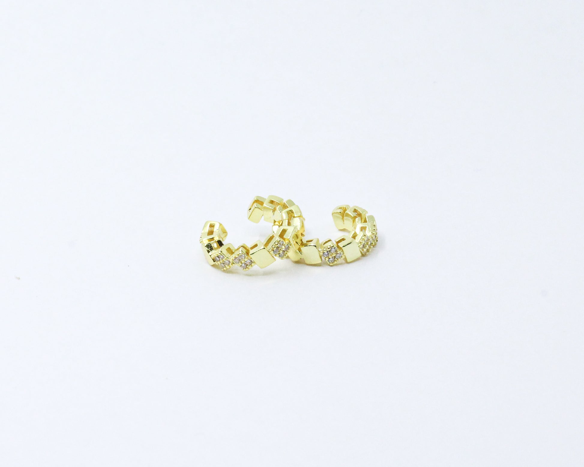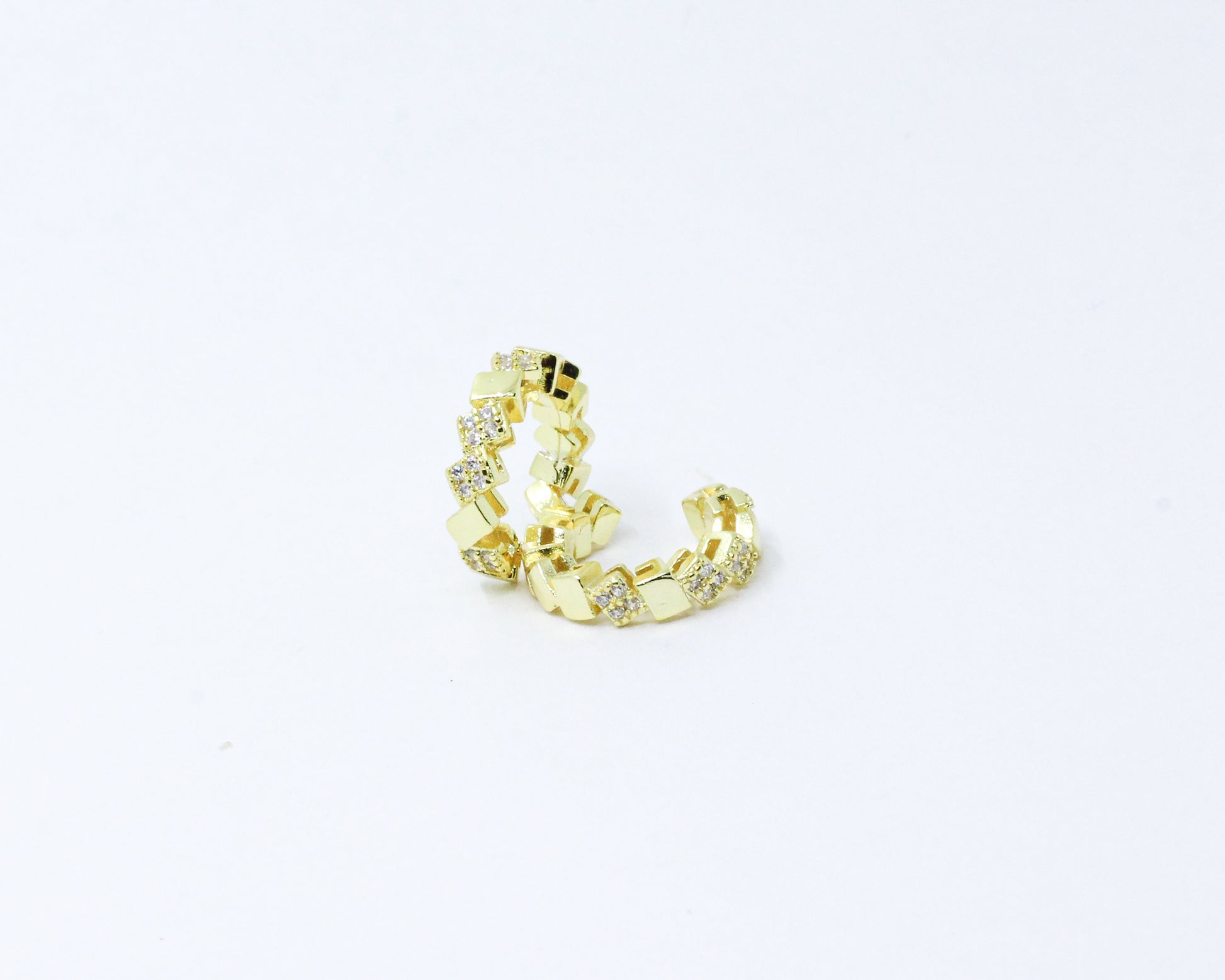 Earcuff dorado con una estructura angular de inspiración contemporánea, que enmarca con precisión una hilera de microcircones, irradiando una sutileza refinada y elegante. Luce con estilo este earcuff dorado, que seguramente llamará la atención en cualquier ocasión.