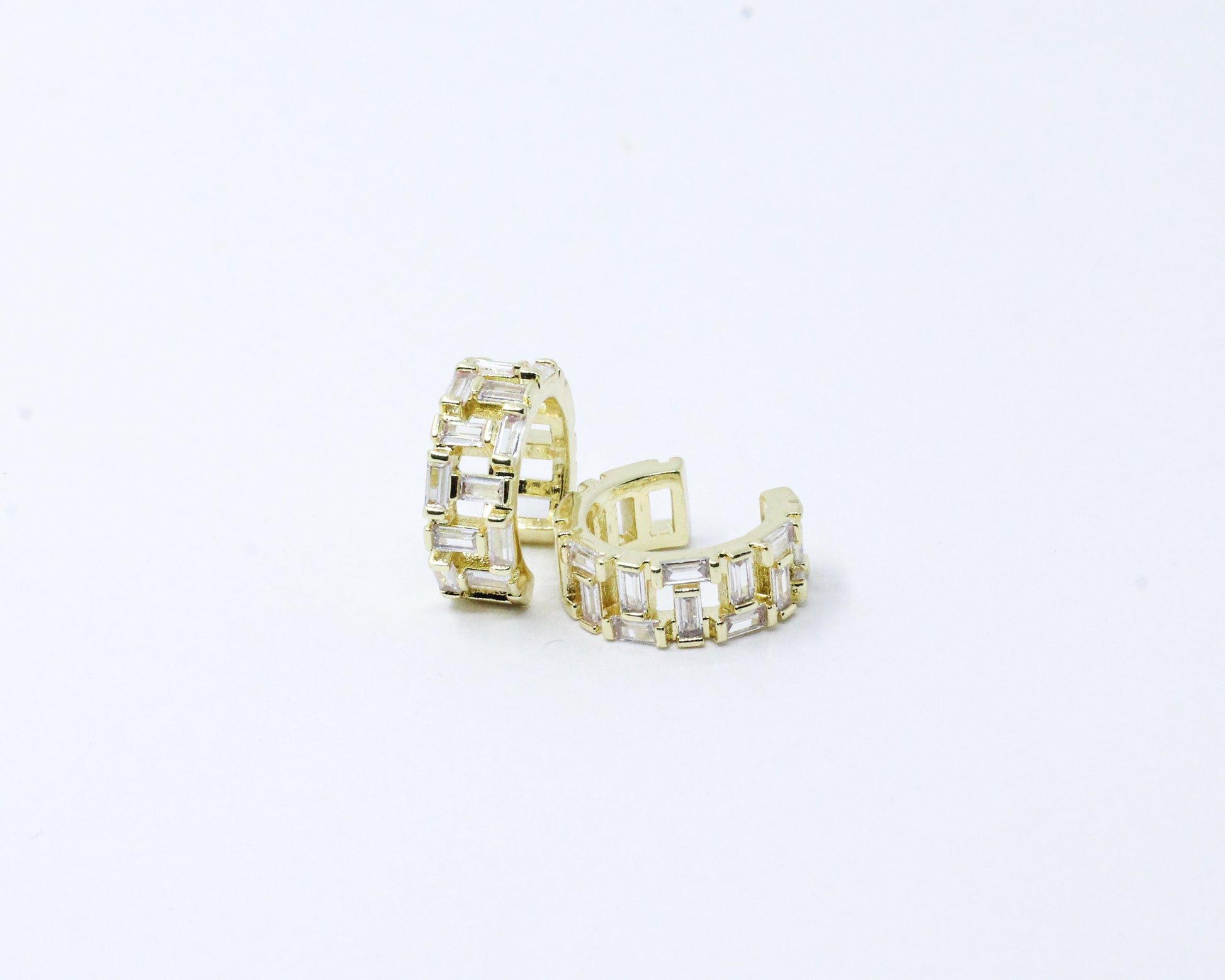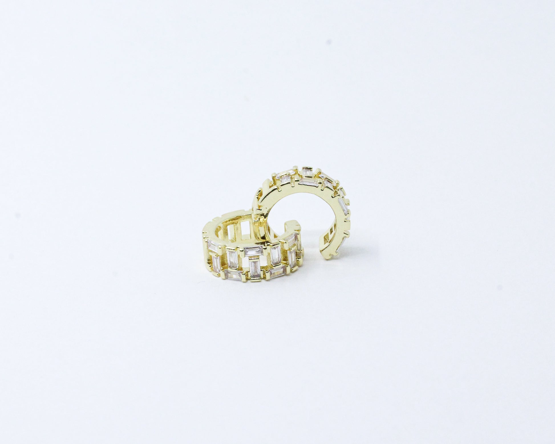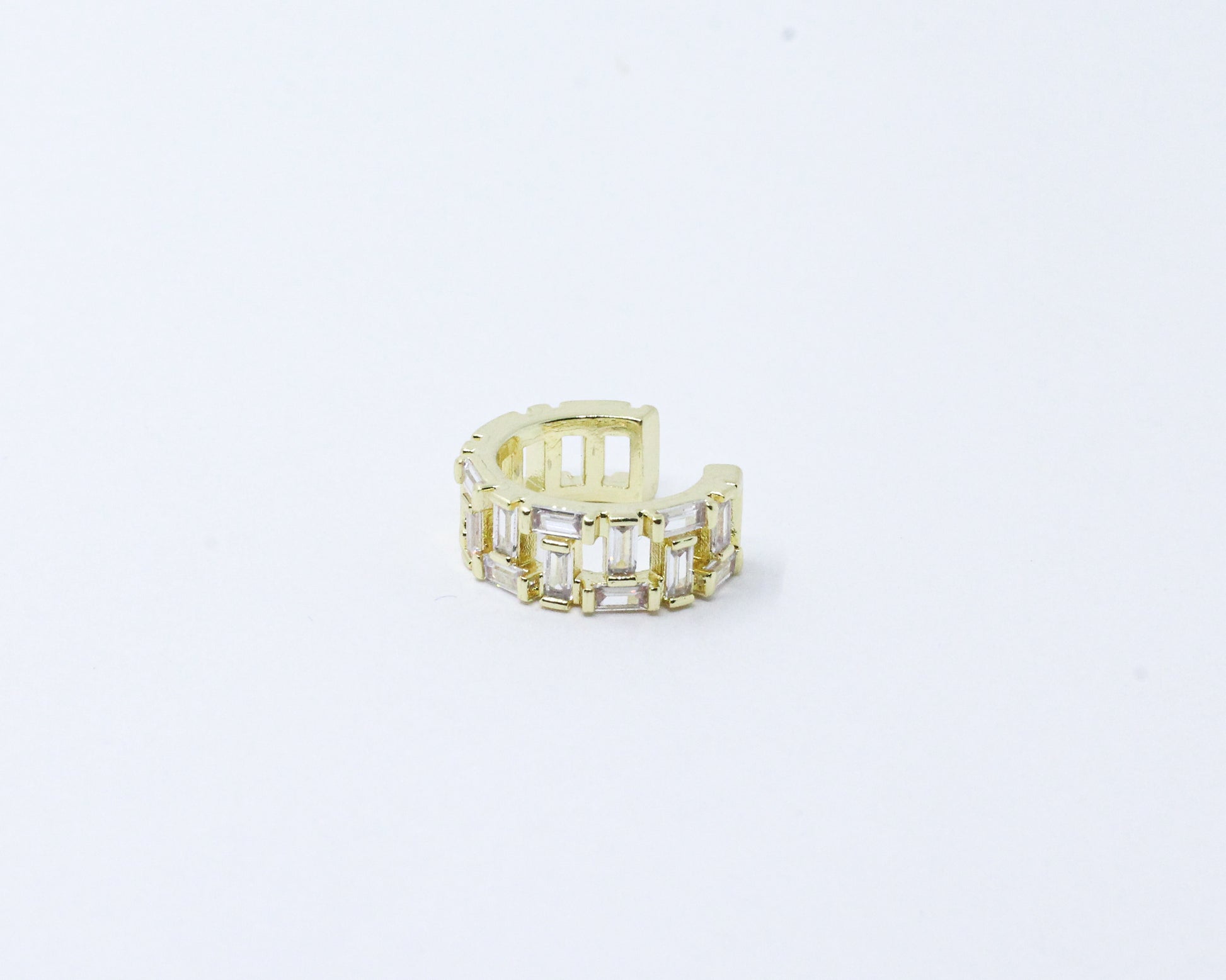 Un earcuff estilo baguette, con una estética moderna y envolvente, realzado por una secuencia de circones alargados que aportan dinamismo al diseño. Añade un brillo sutil y sofisticado a tu look con este earcuff único.