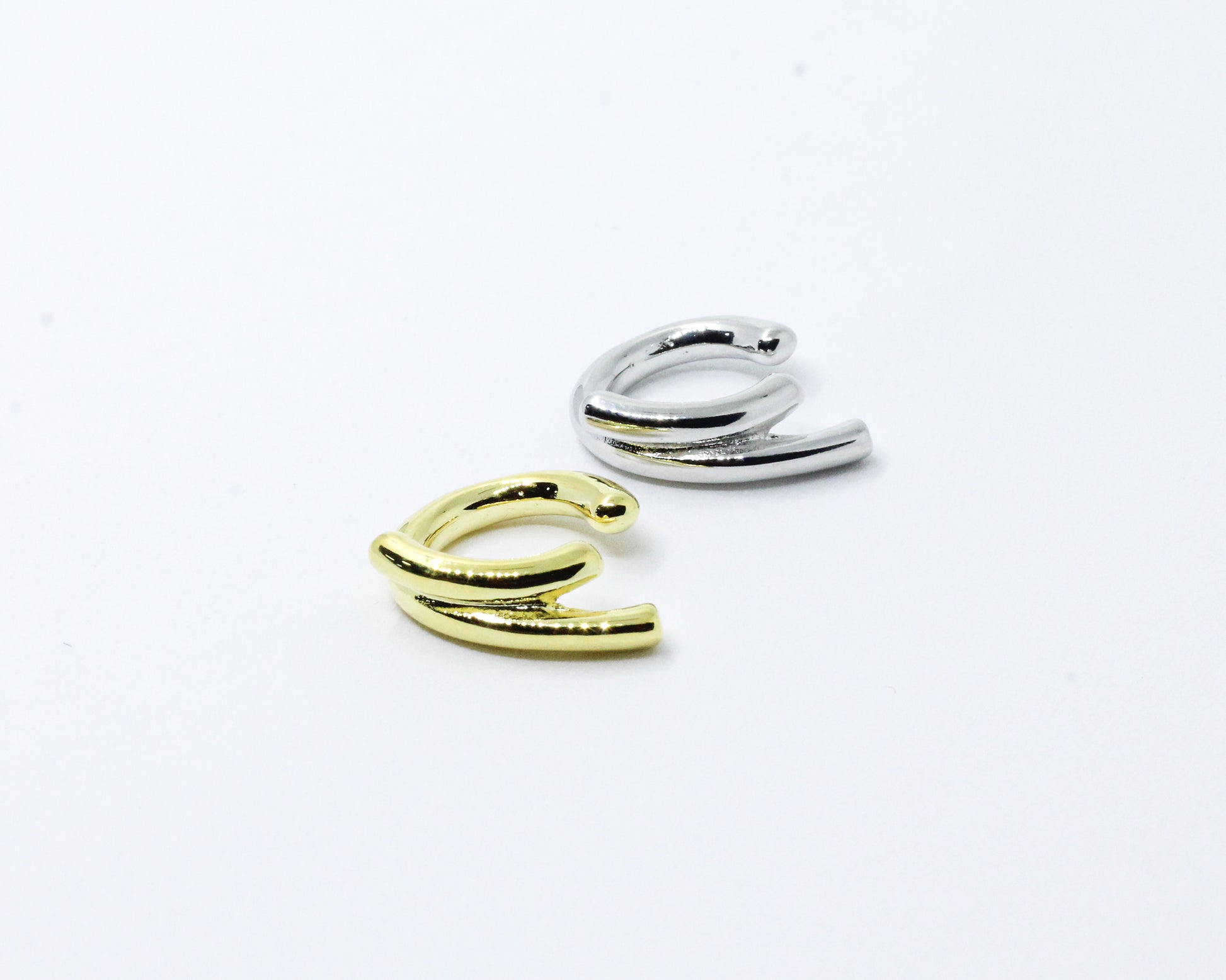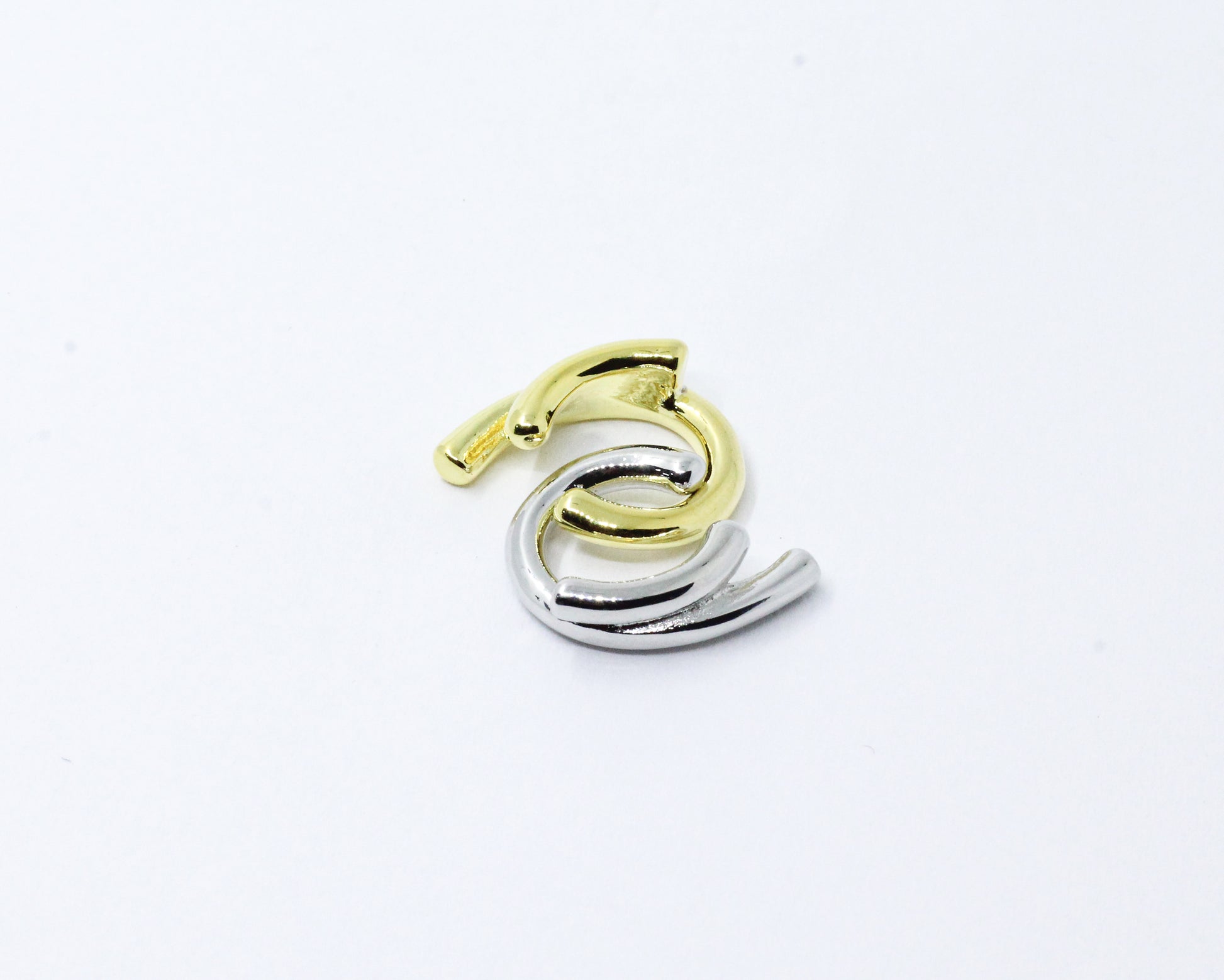 Earcuff estilo chunky, disponible en color dorado o plateado (según elección). Su diseño audaz destaca por sus curvas delicadas y un acabado moderno que realza su carácter contemporáneo. ¡La solución perfecta para cualquier outfit!