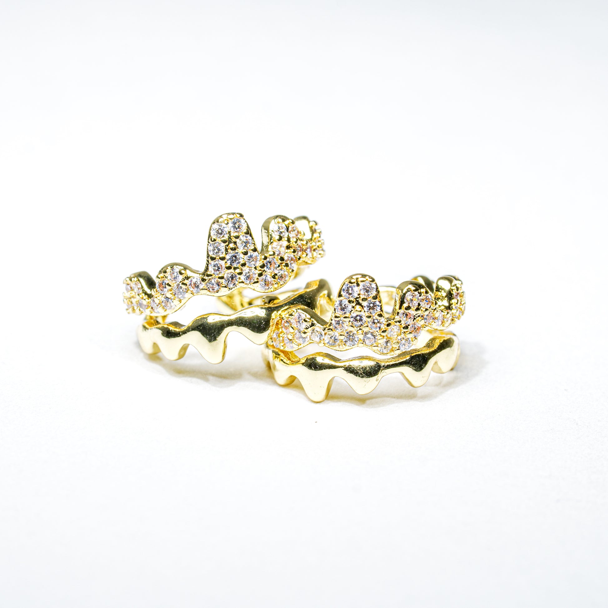 Earcuff con bordes ondulados e irregulares, que combina la sutileza de un lateral liso con el brillo de microcircones engastados en el otro, creando un diseño asimétrico y lleno de personalidad.