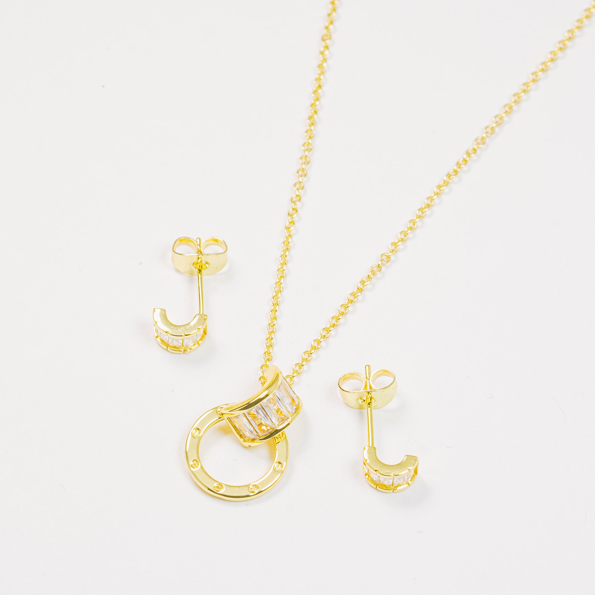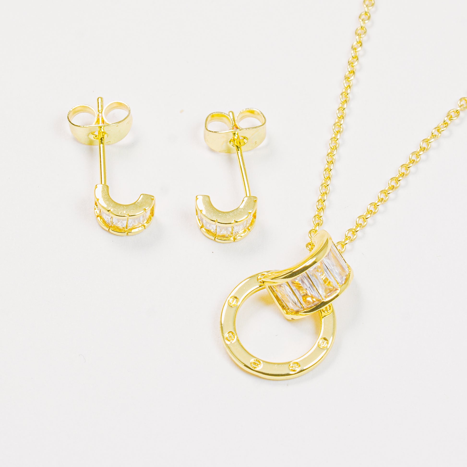 Perfecto para el día a día o para elevar atuendos más elegantes, este set ofrece versatilidad y un estilo atemporal que ilumina cualquier look con un brillo discreto y sofisticado.