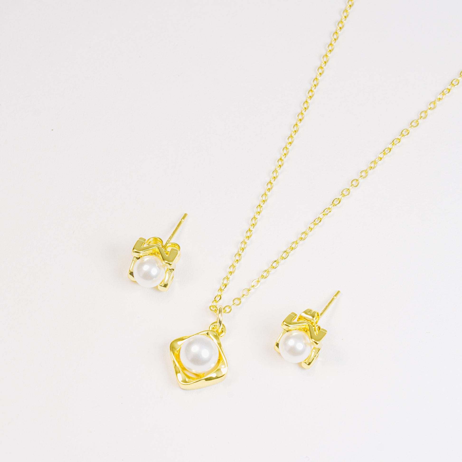 Set Perla En Montura Geometrica