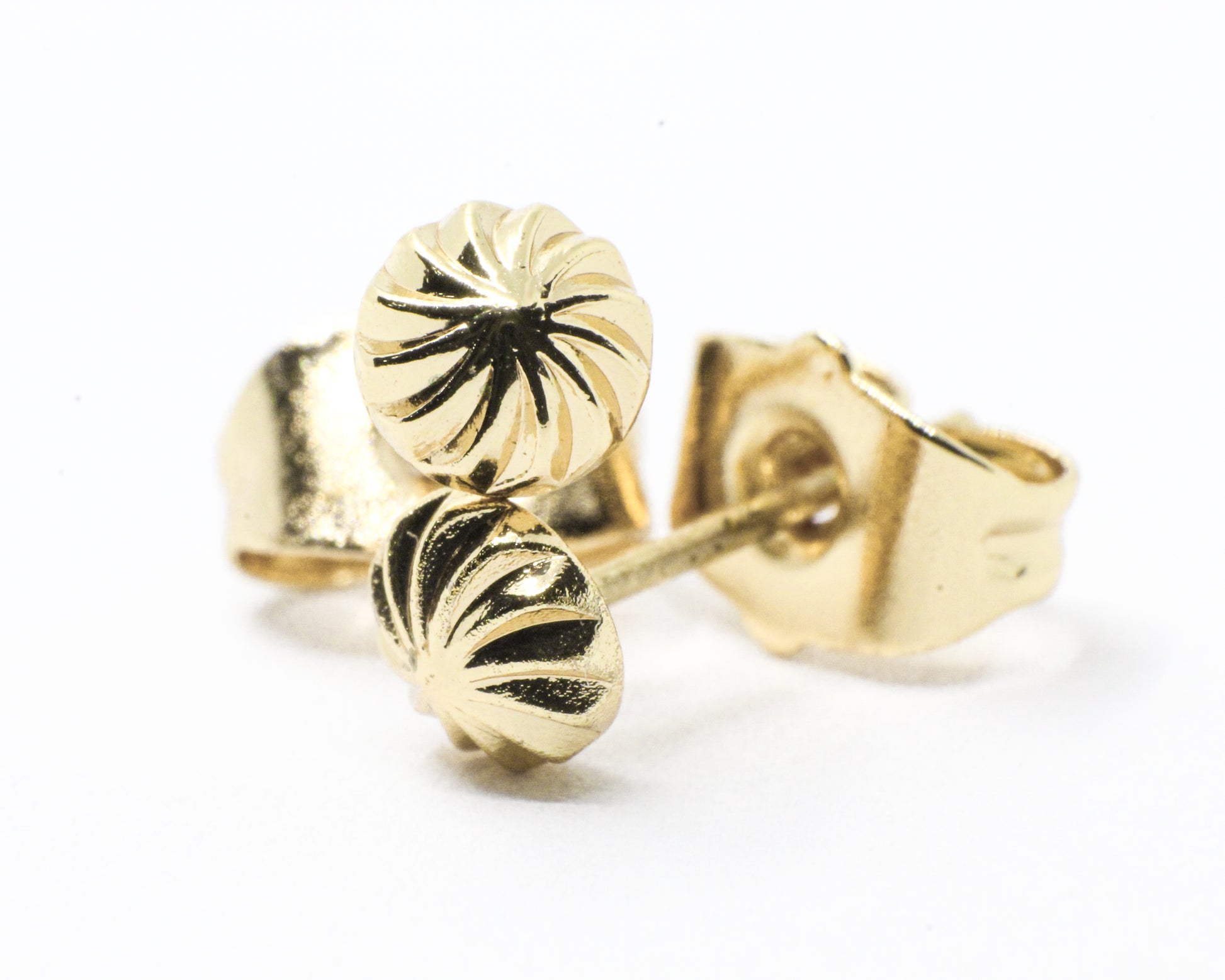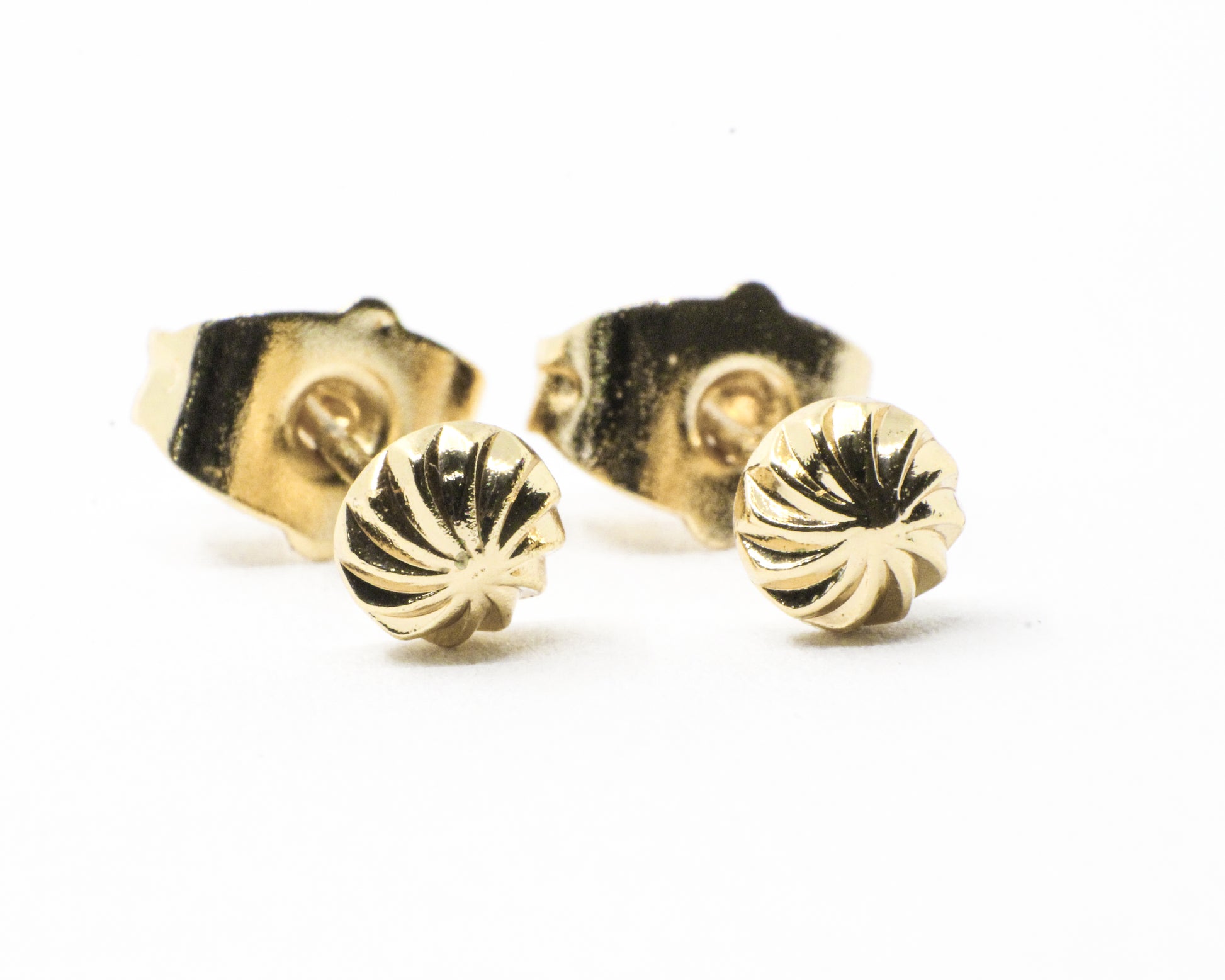 Un par de topos de medio balín diamantado, con un acabado en espiral que crea un delicado efecto de movimiento mientras realza el brillo con sutileza y dinamismo. Gracias a su diseño único junto a sus detalles brillantes, es perfecto para complementar cualquier atuendo y destacar en cualquier ocasión.