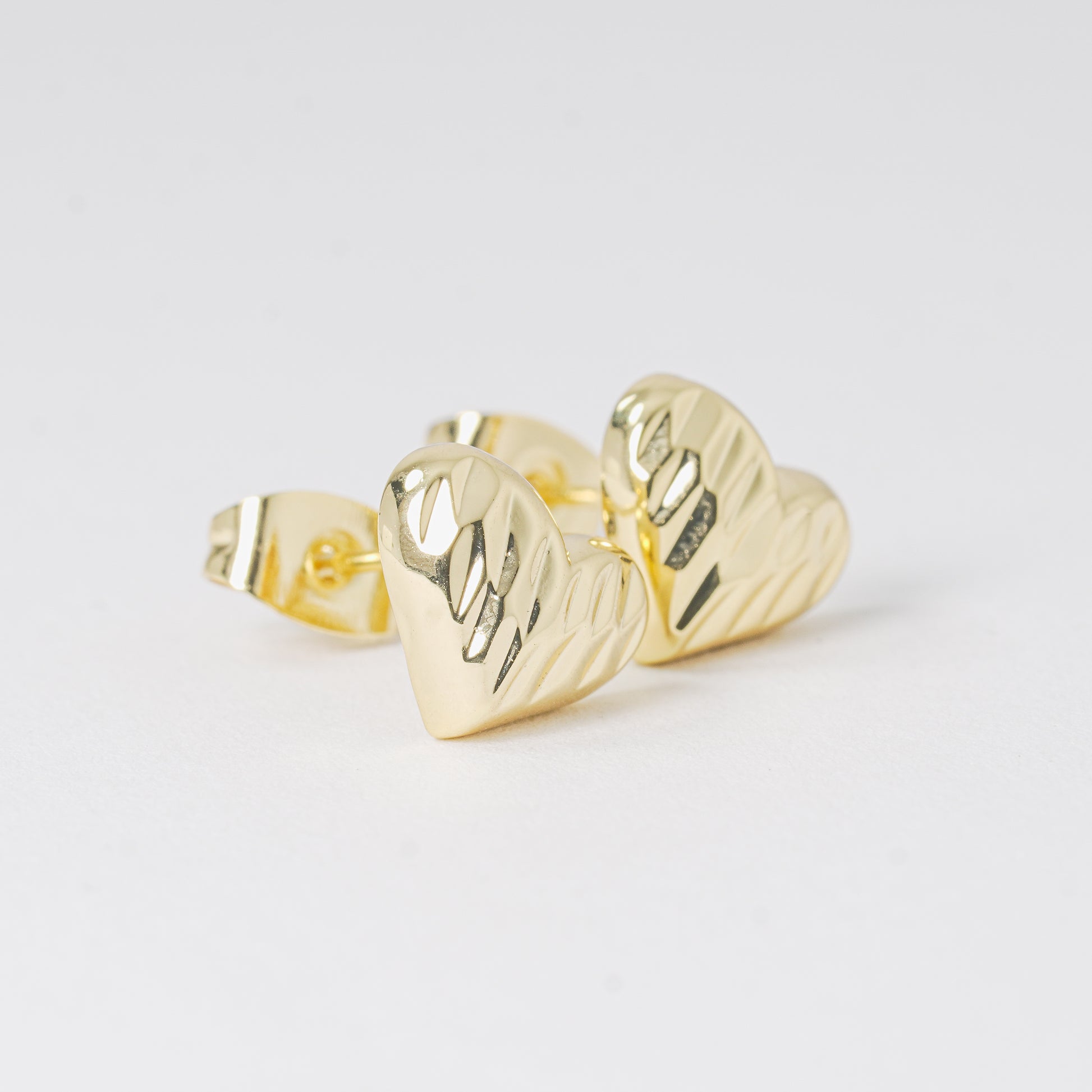 Um par de topos dorados en forma de corazón, que irradian belleza, estilo y brillo. Disfruta de la belleza que brinda esta joya.