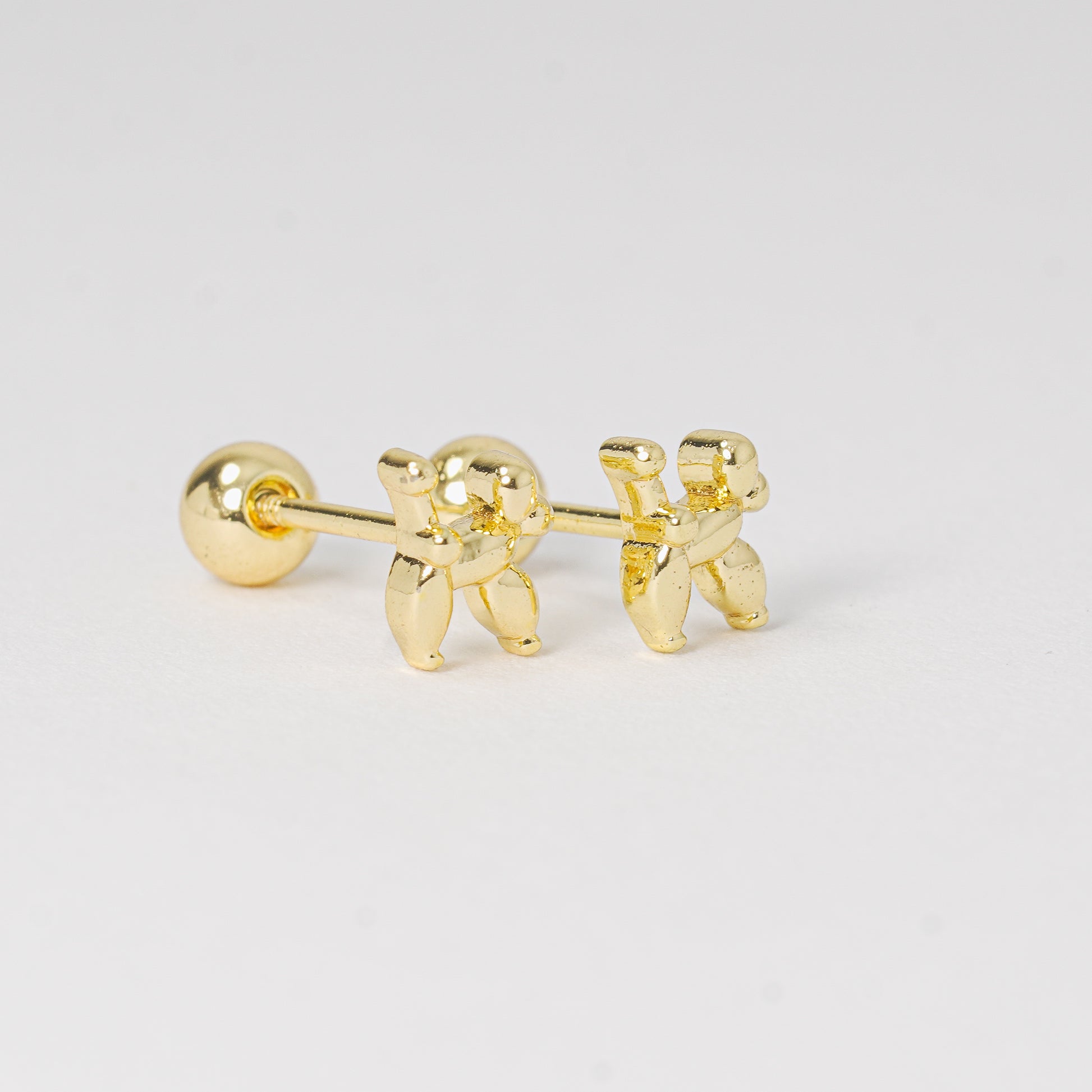 Dale un toque dulce y original a tu estilo con estos encantadores topos dorados en forma de perro, elaborados en rodio para un acabado brillante y duradero.