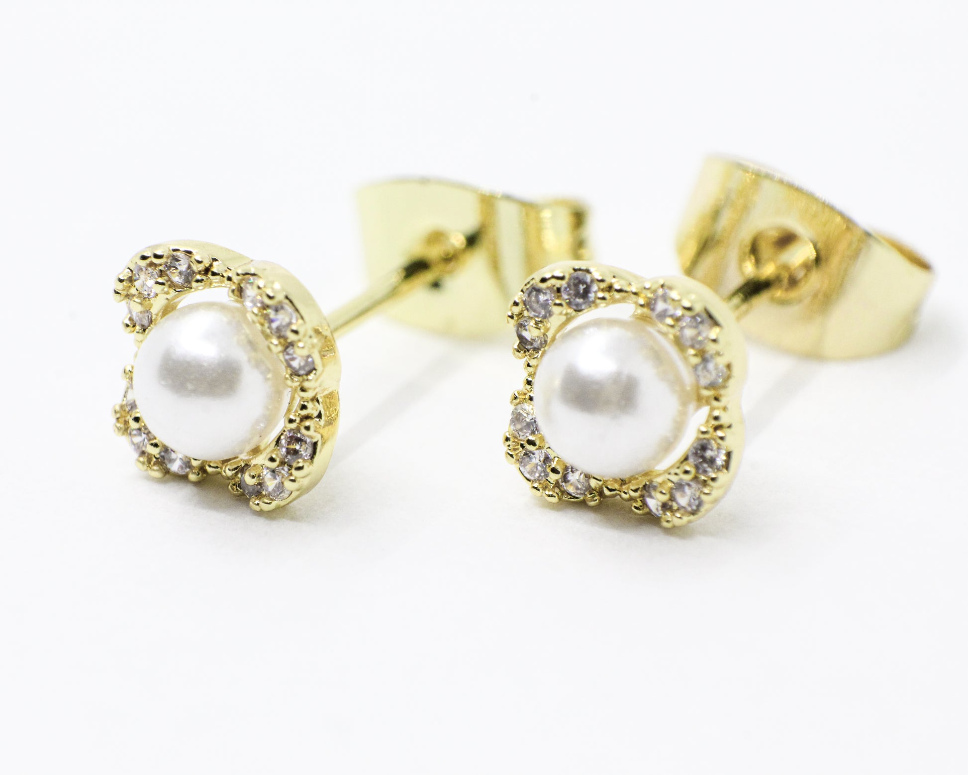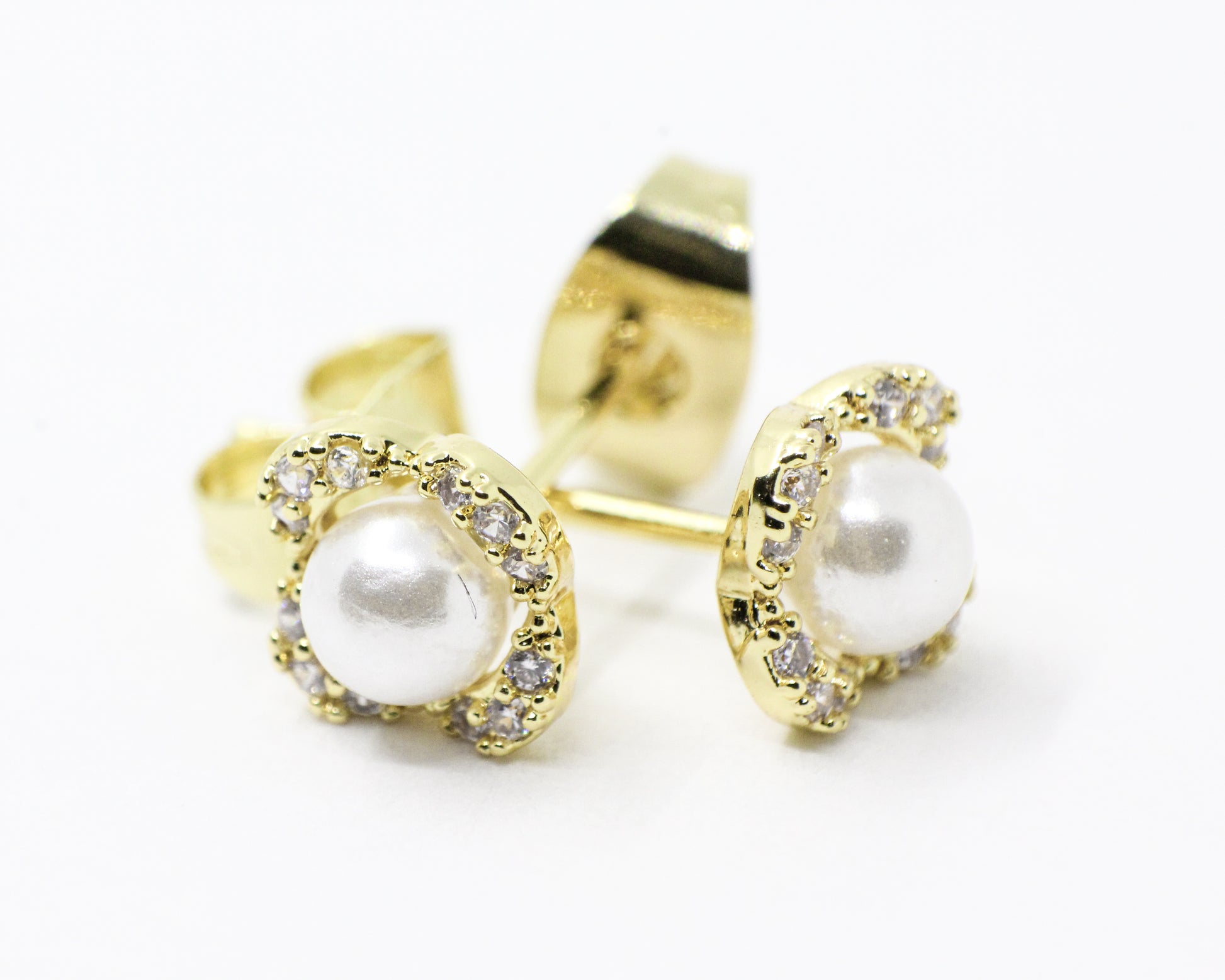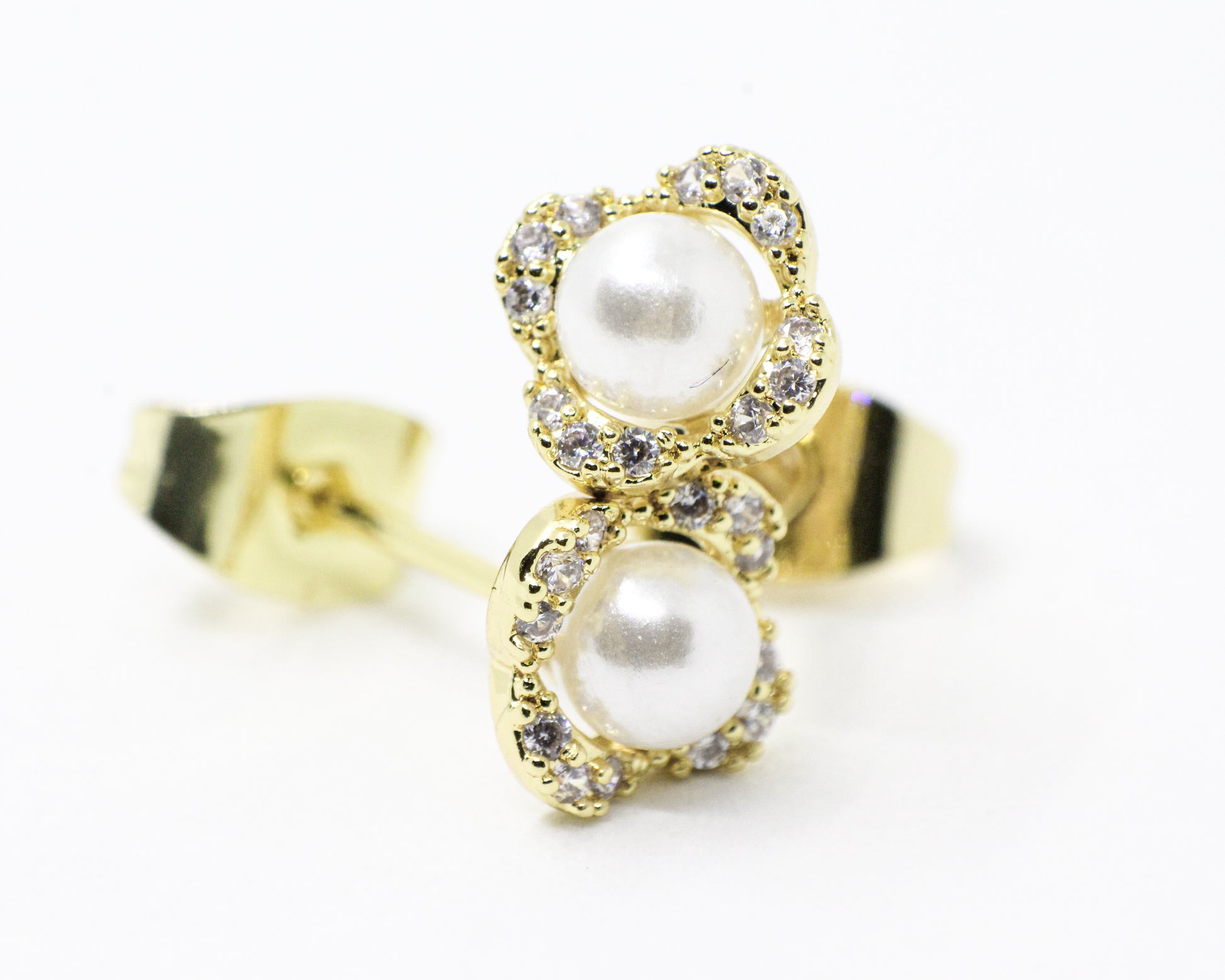 Un par de topos dorados con una perla central y microcircones dispuestos de forma asimétrica, que irradian suavidad, pureza y un brillo delicado. Disfruta de la belleza y la clase que brinda esta joya.