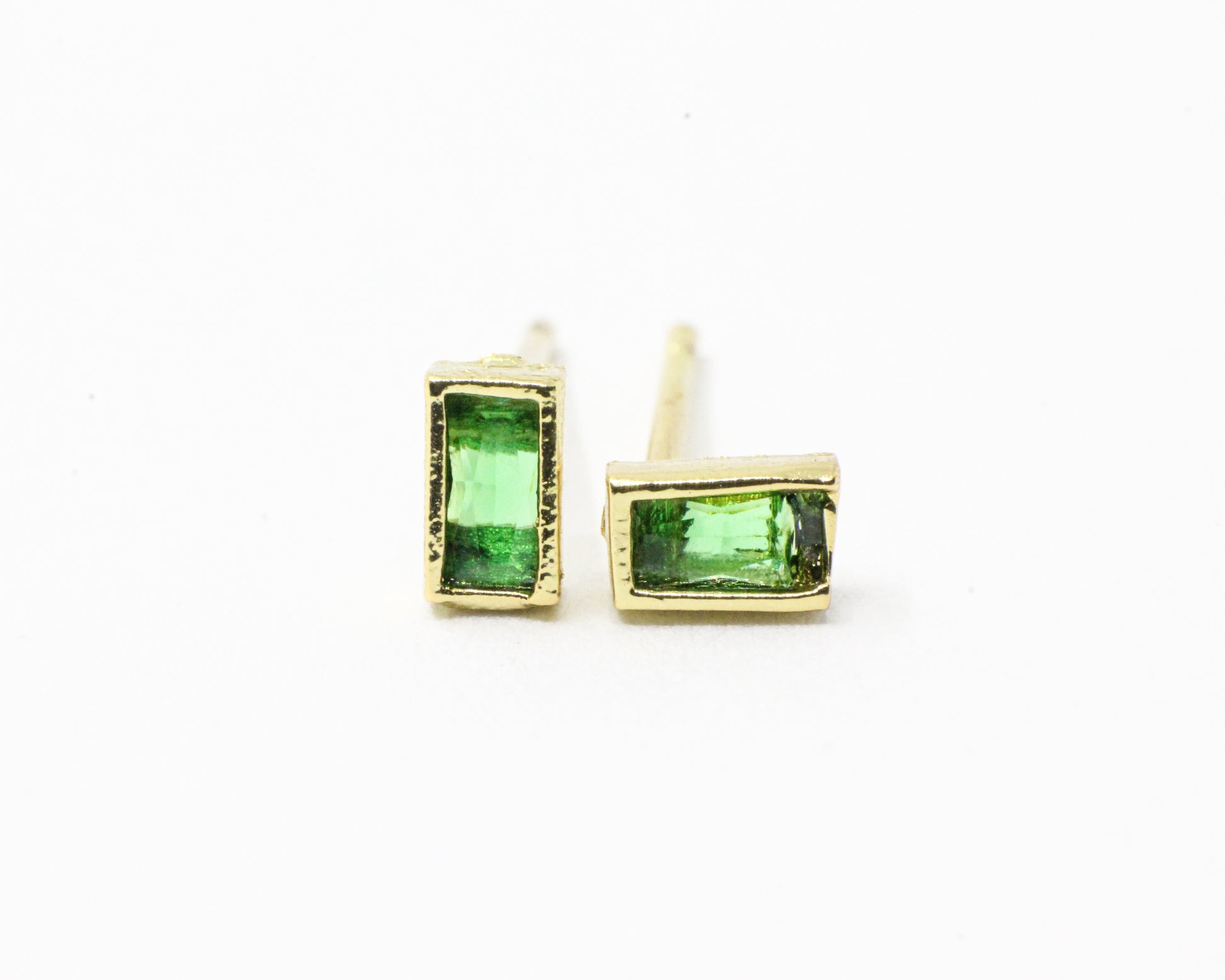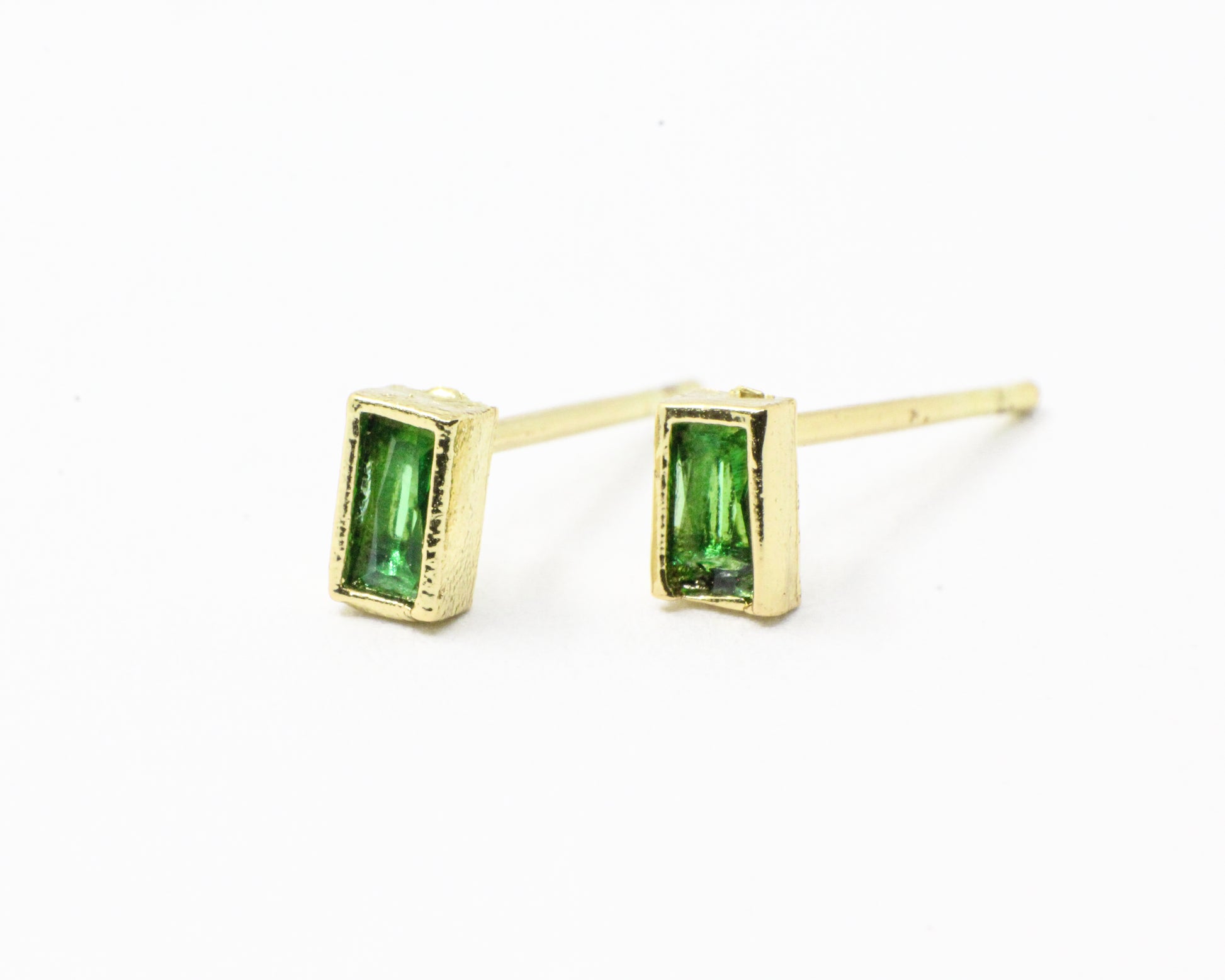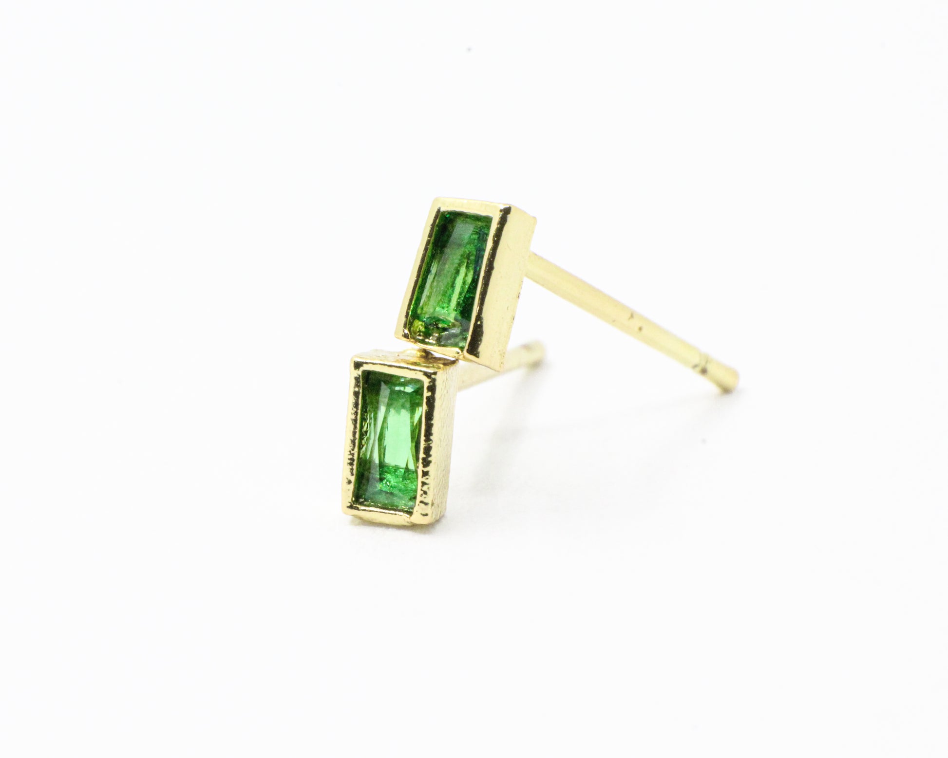 Un par de topos dorados rectangulares, engastados con un circón de tono verde esmeralda profundo, que aportan un toque de color y elegancia. Adquiere ahora mismo los topos Piedra Verde Esmeralda.
