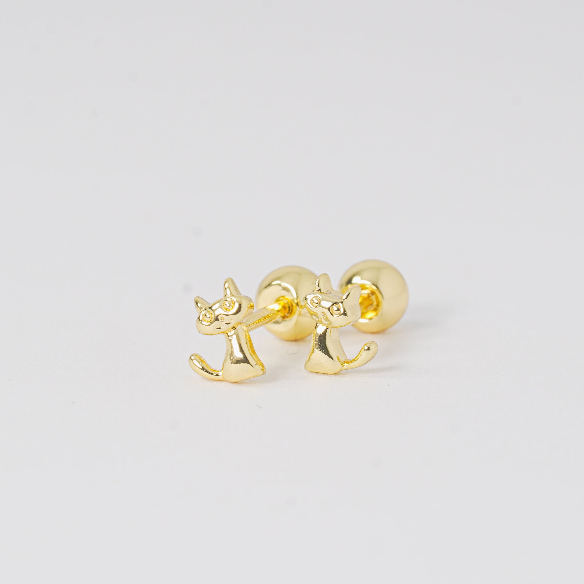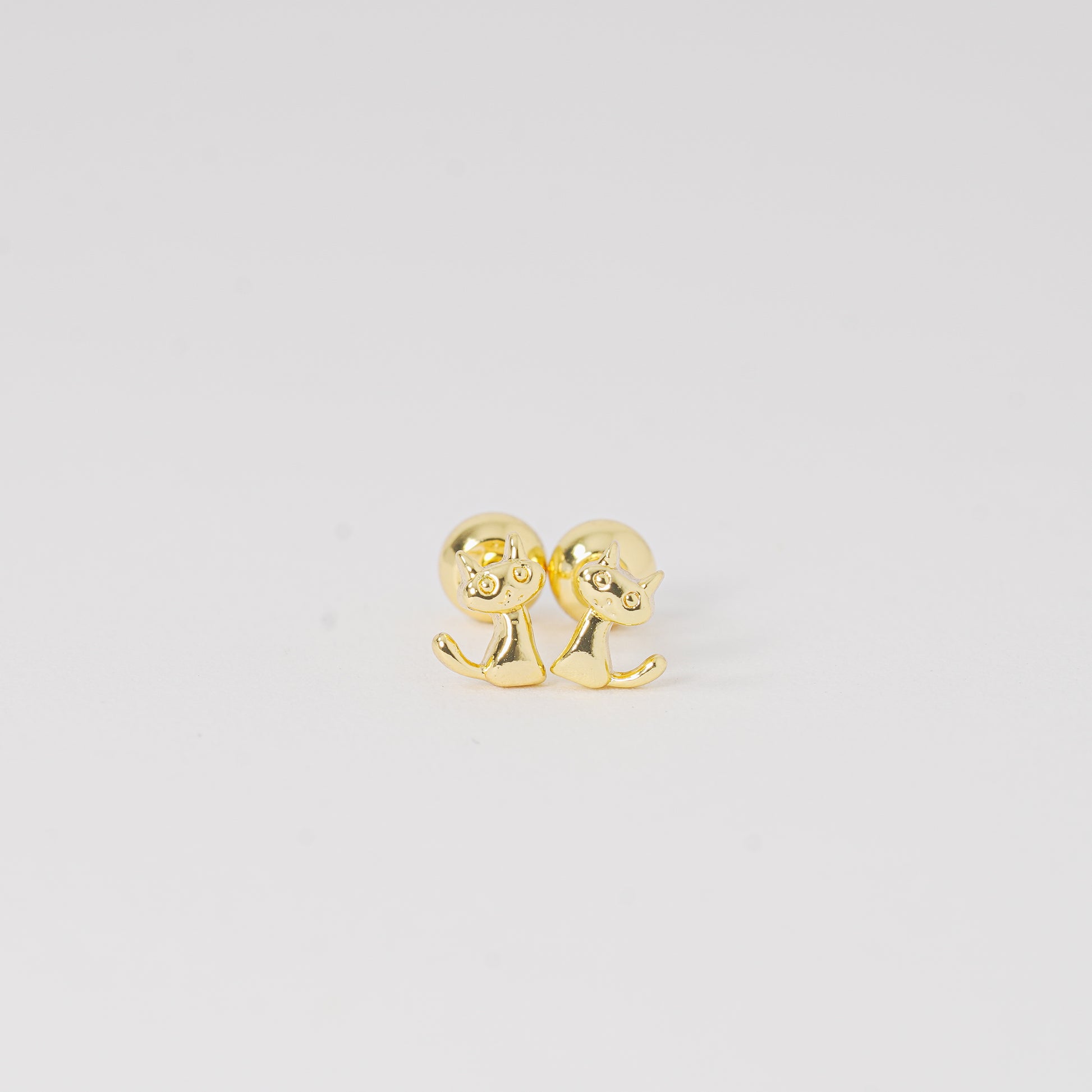 Un par de topos dorados con forma de gatito, diseñados con líneas delicadas que capturan su encanto juguetón y su elegancia natural. Un detalle tierno y sutil que aporta personalidad y brillo a cualquier look.
