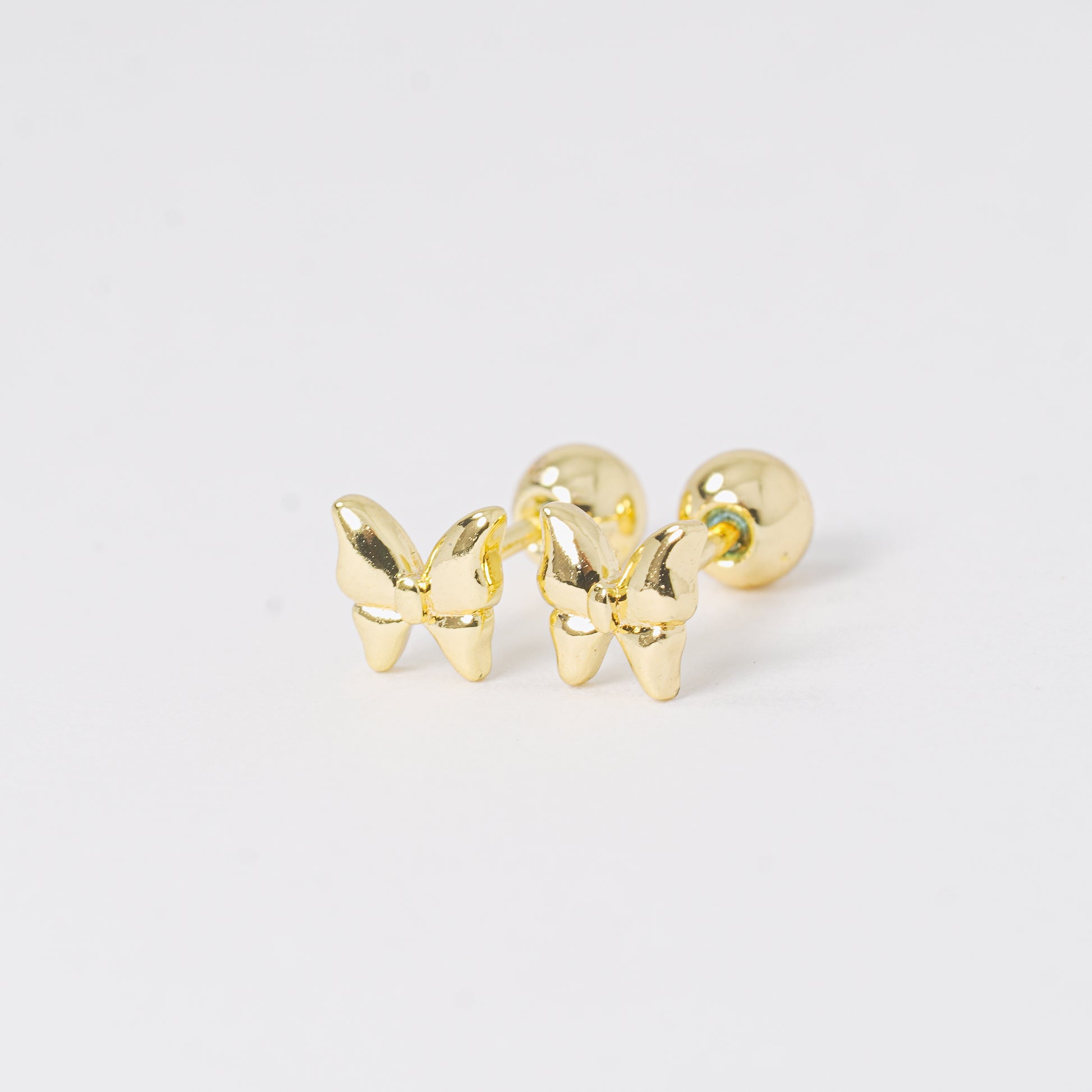 Un par de topos dorados en forma de mariposa, con un diseño delicado y elegante que refleja ligereza, transformación y belleza. Su brillo sutil aporta un toque femenino y encantador, perfecto para acompañar cualquier look con suavidad y estilo.